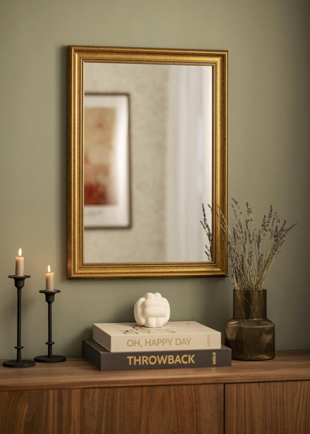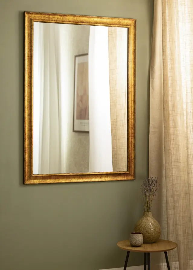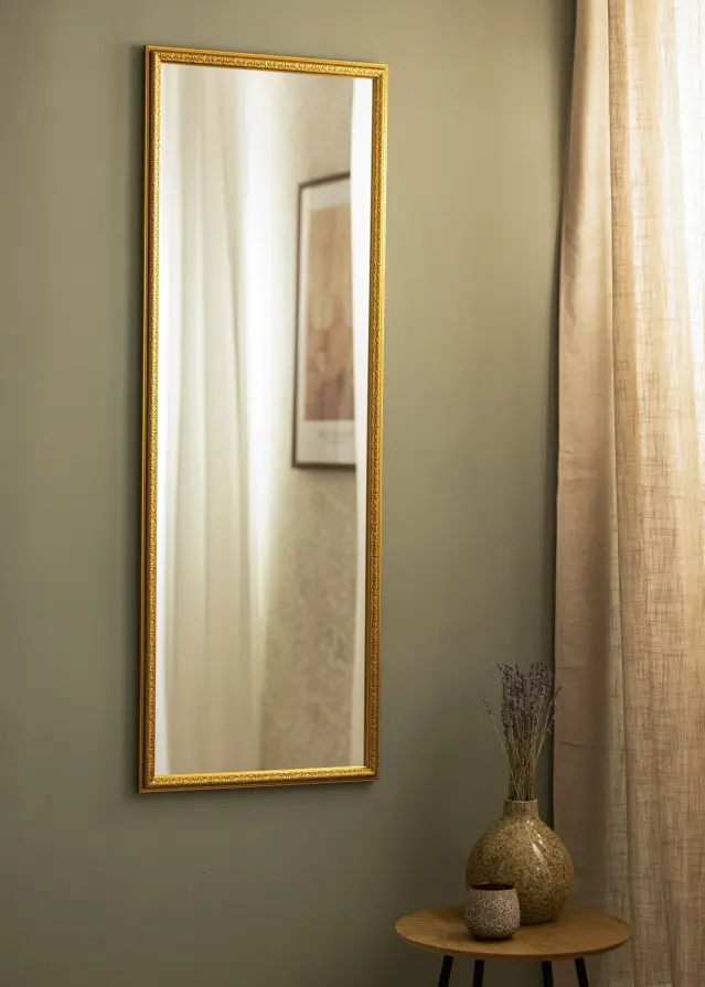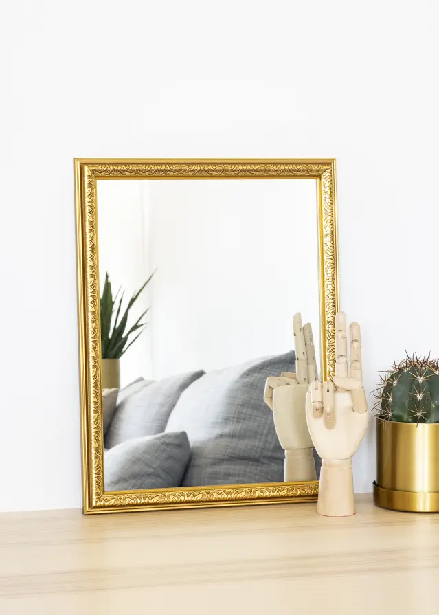 Zlate ogledala so popolna za kombiniranje z zlatimi okvirji, in ker prodajamo tudi to, lahko obe kupite pri nas. Seveda izgleda čudovito z različnimi zlatimi detajli na isti steni. Prav tako izgleda lepo, da imate zlate ogledala in zlate okvirje v celotni sobi na več različnih stenah. Poskusite in videli boste, kako lepo izpade!