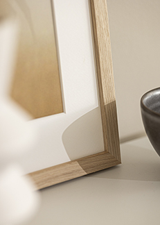 Izvedba okvirja se ne sme le skladati z vašim domom, temveč mora tudi najboljše dopolnjevati motiv slike. Barvit motiv se dobro ujema bodisi z nevtralnim okvirom, na primer s črnim ali belim, bodisi z modelom v barvi, ki je v kontrastu z barvami, ki prevladujejo v motivu. Če želite uokviriti črno-belo fotografijo, morda želite namesto tega kombinirati barvne tone slike z ekskluzivnim zlatim okvirjem ali elegantno peščeno barvno različico.