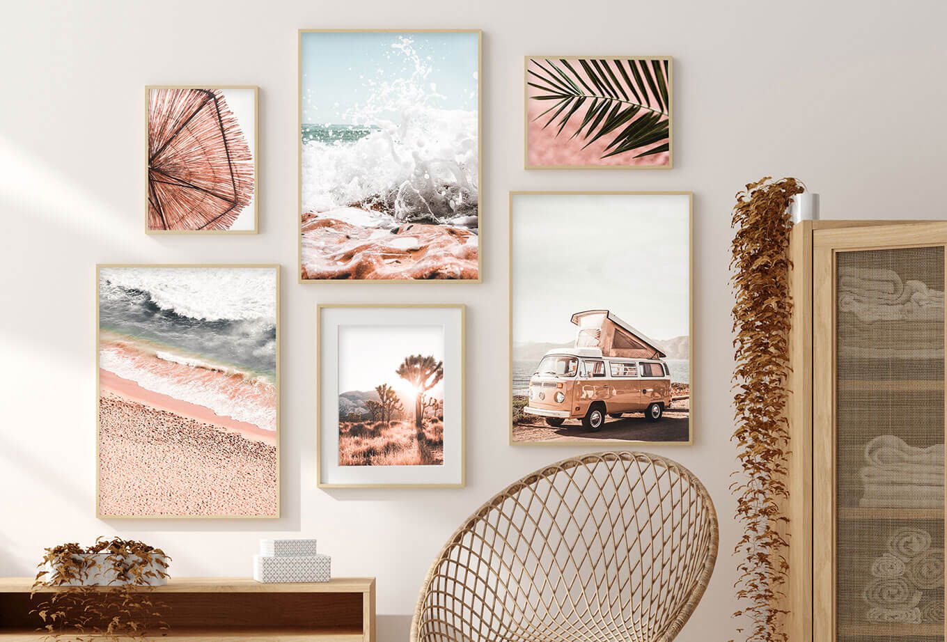 Tukaj boste našli navdih in nasvete za uspešno stensko galerijo! Naši pripravljeni paketi so ustvarjeni za vse, ki si želijo elegantnega koncepta s slikami, ki skupaj ustvarijo poseben vtis. Če izberete enega izmed teh paketov, vam ni treba zapravljati časa za usklajevanje motivov in okvirjev. V paketih boste našli nekaj naših najbolj priljubljenih posterjev in okvirjev. Slike so umeščene v prostore, kamor se še posebej dobro podajo. Namen je ponuditi primere stenskih galerij za vse vrste interierjev in osebnosti.