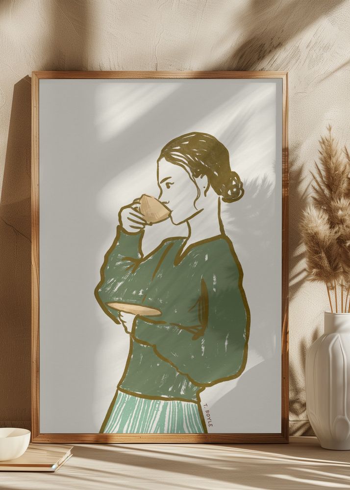 https://www.bgastore.si/Woman-Drinking-Tea-in-Green-Poster-50x70-cm