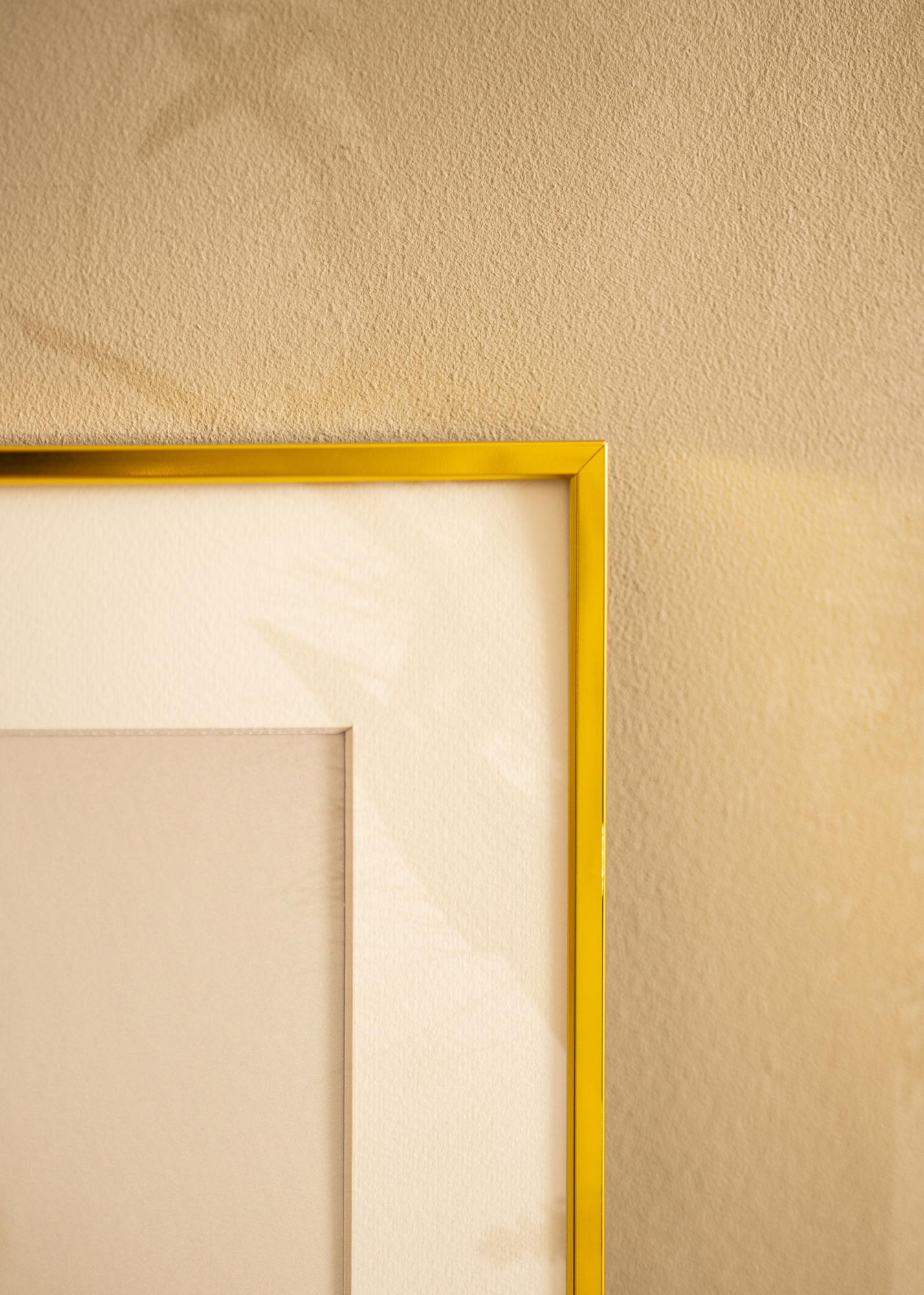 Ustvarite razkošen občutek v vašem domu z našim elegantnim zlatim okvirjem v velikosti 61x91,5 cm. Ta zlato barvani sijajni okvir za fotografije je popoln okvir za vaše najljubše plakate, umetniška dela ali fotografije. S svojo ozko letvico širine le 7,8 mm daje sofisticiran in moderen pridih vašemu izbranemu motivu.