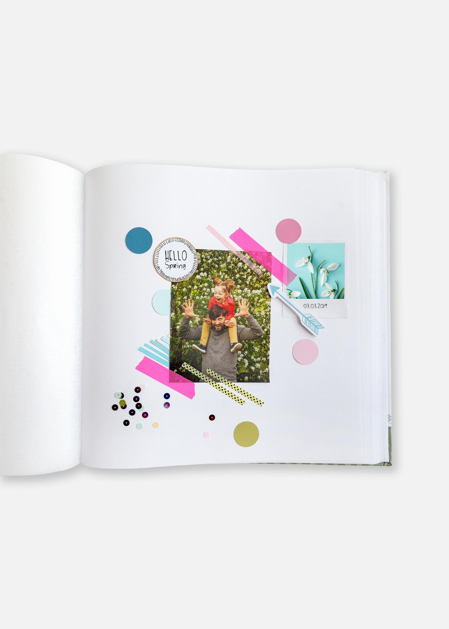 Album vsebuje 100 belih strani, kar ustreza 50 listom, kjer lahko razporedite svoje fotografije točno tako, kot želite. Zaščitni pergamentni listi med vsakim listom zagotavljajo, da so vaše slike ohranjene v popolnem stanju in preprečujejo drgnjenje med seboj.