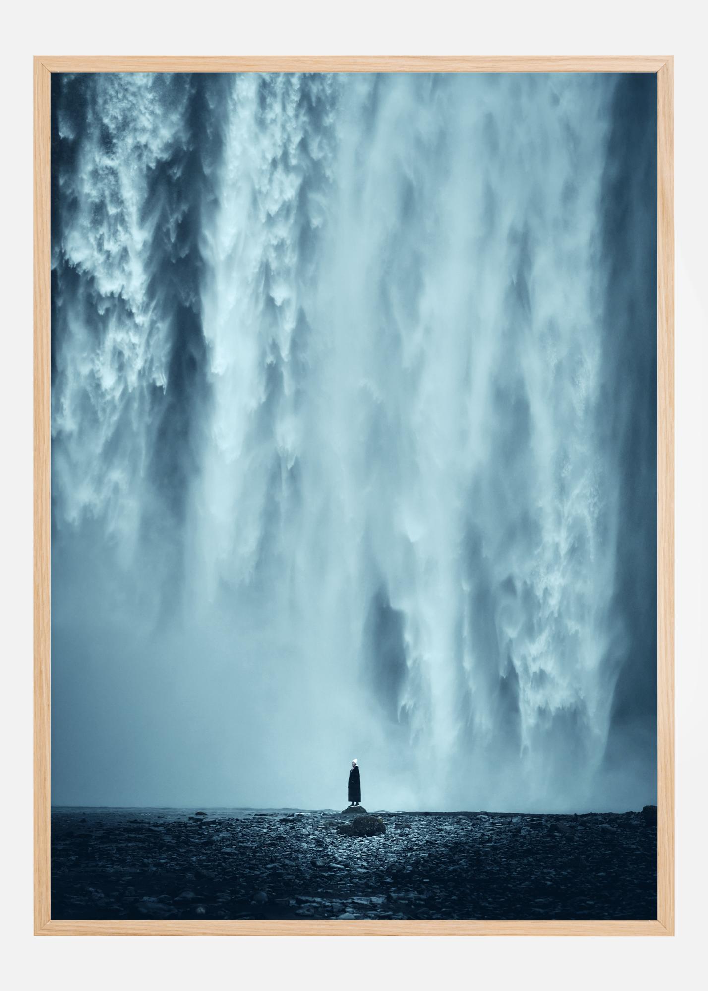 Epski plakat, ki prikazuje neverjetno moč narave skozi slap. Dramatika se dopolni z majhno črno figuro na sredini slike, ki zre v padajočo vodo. Modro-beli slap vzbuja občutek občudovanja na tej čudoviti sliki.
