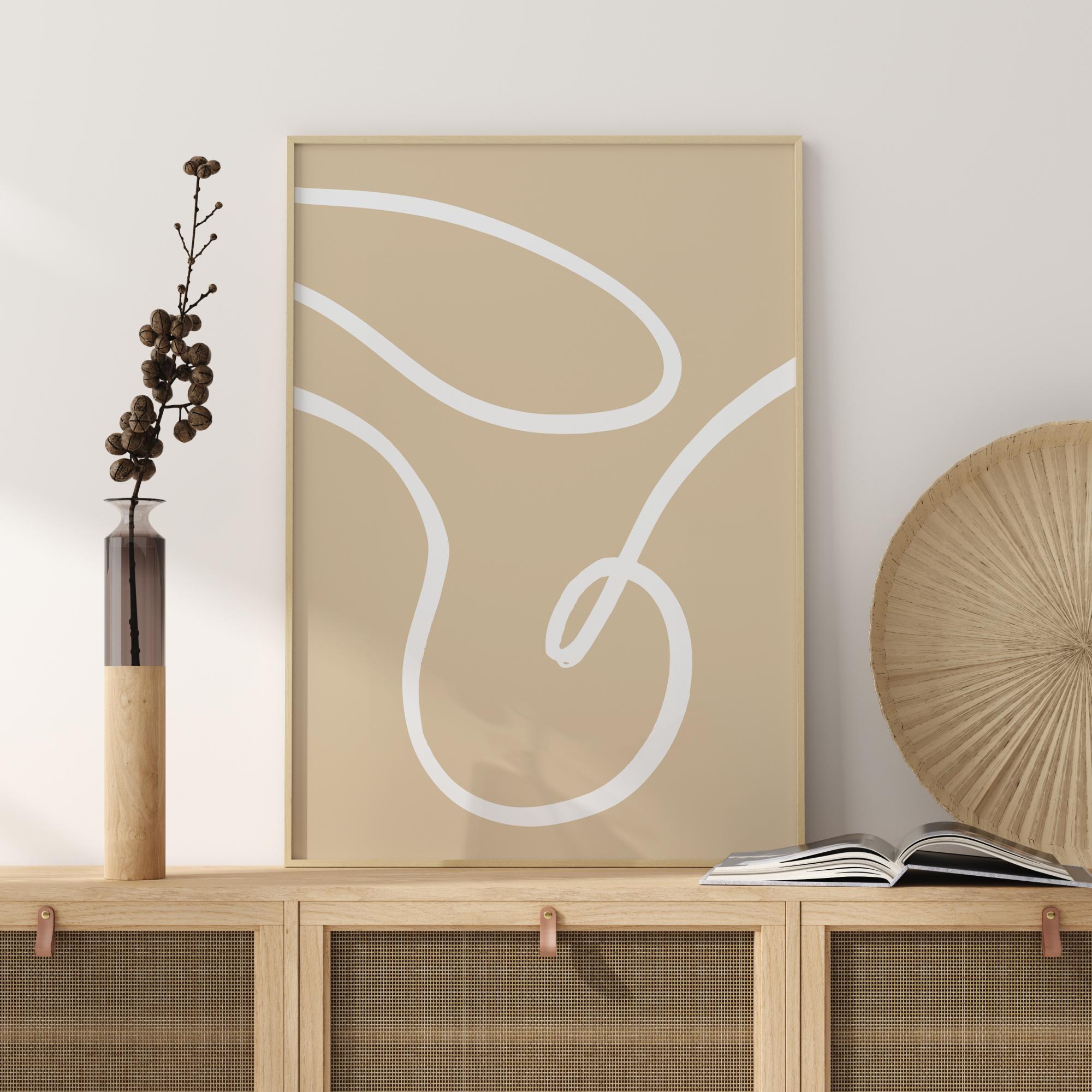 Enostaven plakat z linijsko risbo, kjer se kremnobelih črte vidijo kot spirale na bež ozadju, da sprostijo domišljijo. Lahko vidiš in doživiš, kar hočeš, medtem ko gledaš to delo. Za še močnejši učinek lahko plakat obesiš na drzno obarvano steno doma.