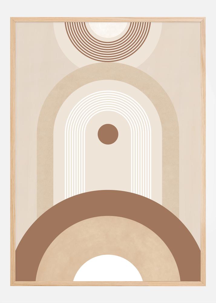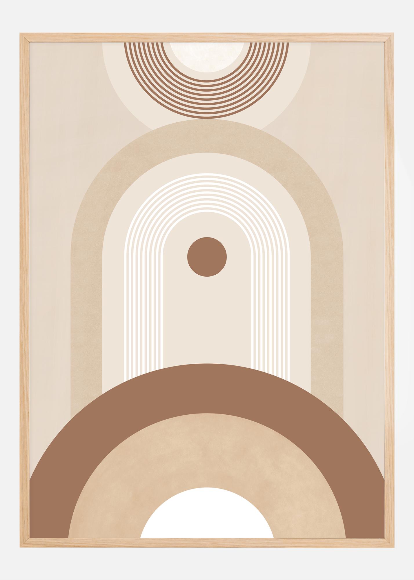 Raziščite lepoto geometrije in minimalizma s tem edinstvenim posterjem, delom naše skrbno izbrane umetniške zbirke. Ta tisk, navdihnjen z estetiko sredine stoletja, združuje krožne oblike in linije za ustvarjanje občutka ravnovesja in harmonije. Mehki bež in rjavi toni tega plakata izražajo občutek miru in so popolni za ustvarjanje sproščenega in elegantnega vzdušja v vsakem prostoru.