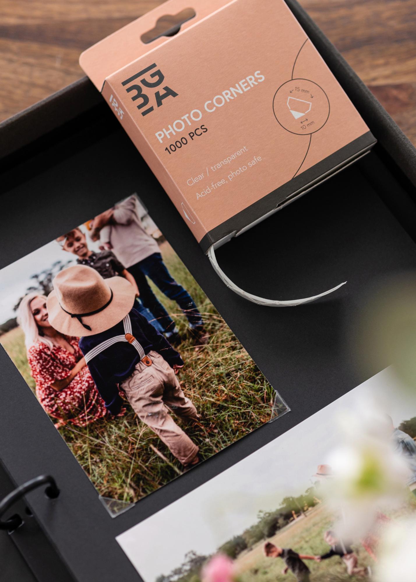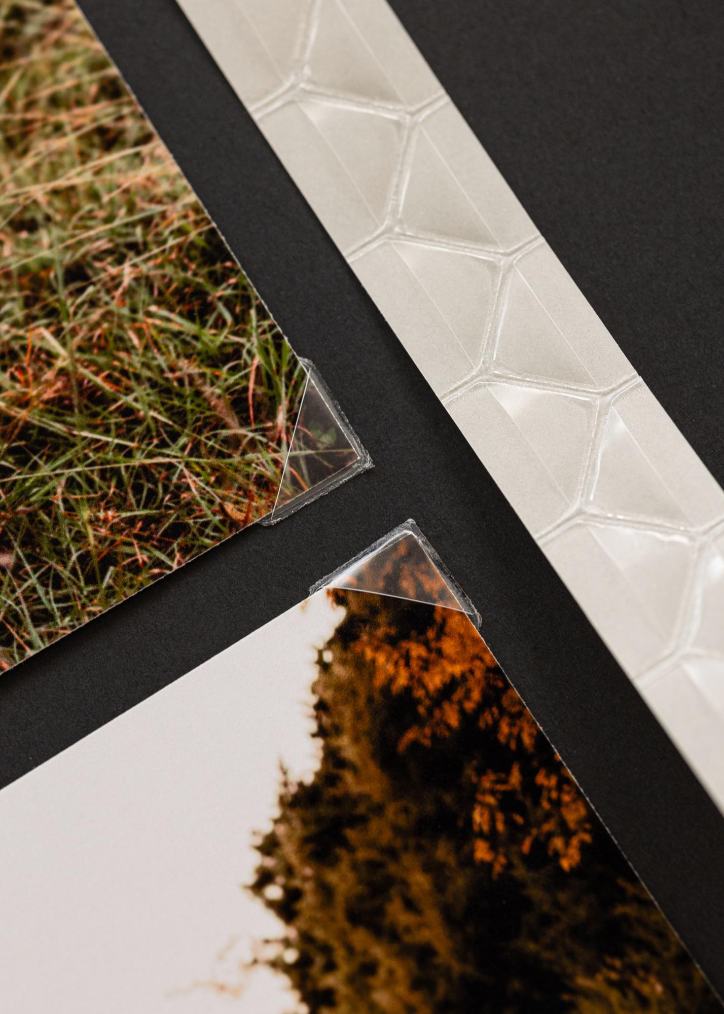 Z lepljivimi foto vogali je montaža vaših slik hitra in enostavna! Ti prosojni foto vogali so prav tako brez kislin, kar pomeni, da so nežni do vaših slik in fotografij. V paketu je 1000 foto vogalov v dimenzijah 10x15 mm.