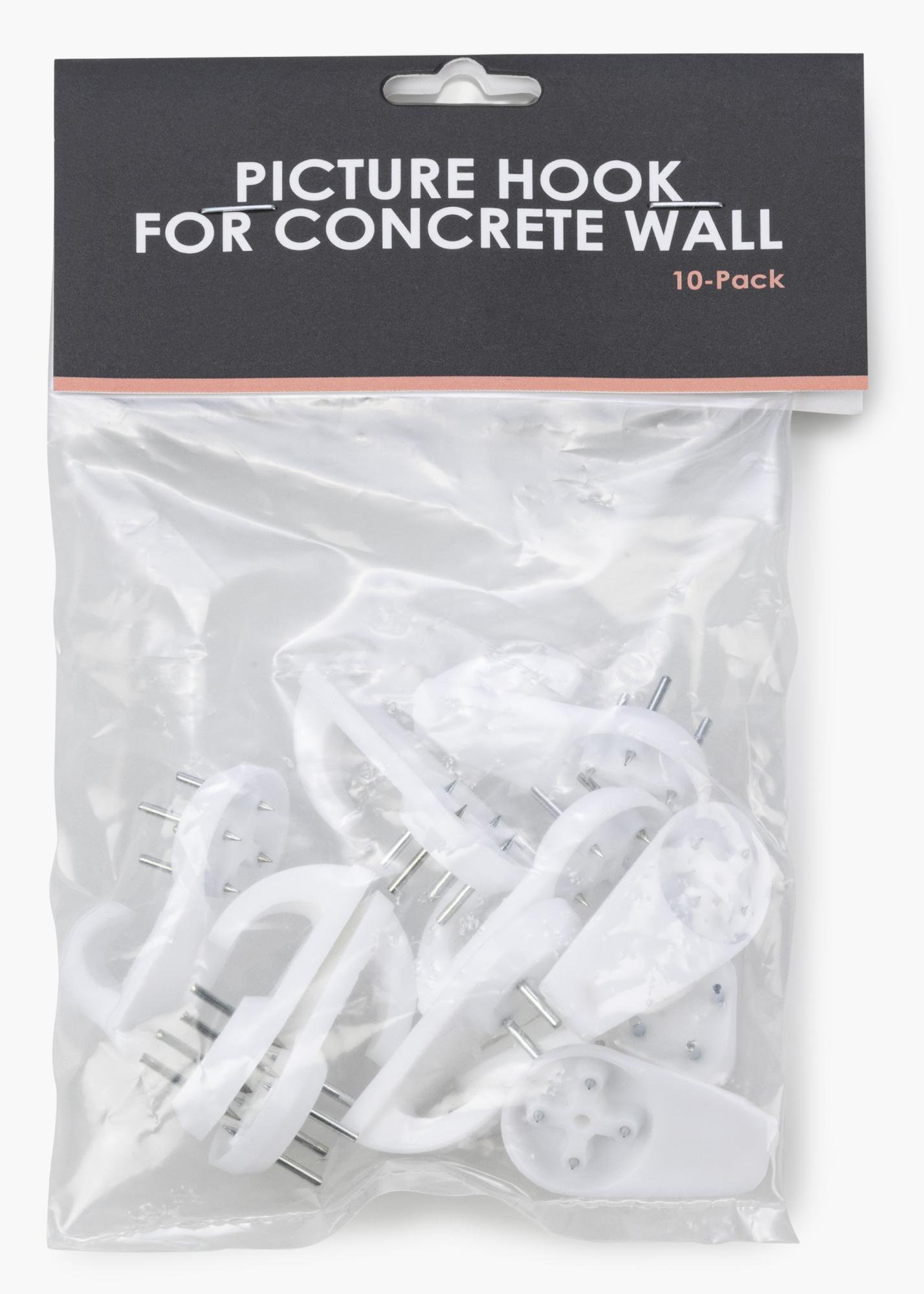 Velik kljuka za slike v paketu po 10 za betonske stene, ki vam omogoča, da se izognete vrtanju in težavam z vložki. Primeren za lažje in manjše slike.