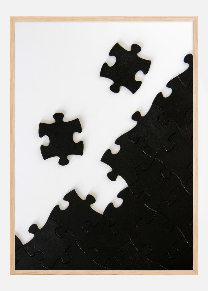 Ta fascinantni plakat s črno-belo uganko je metafora za skrivnost, kompleksnost in veselje do rešitve. Igra se z idejo o gledanju celotne slike, kjer je vsak posamezen del ključen za končni rezultat. Kreativna namestitev črnih delov uganke na beli podlagi ponuja močan vizualni kontrast in opomnik, da lahko tudi tisto, kar se zdi, da manjka, ustvari zanimivo sliko.