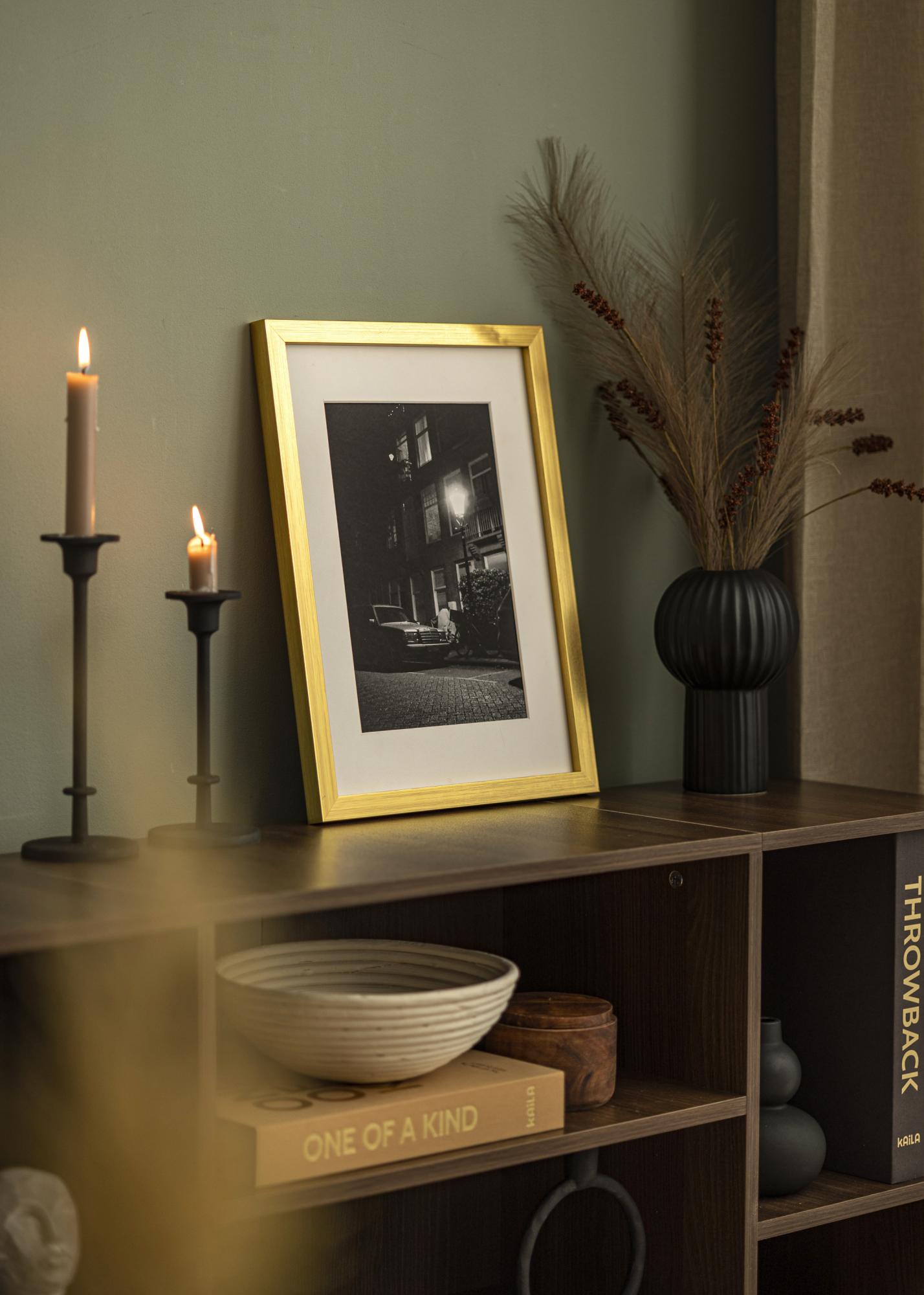 Doživite umetnost na nov način z našim elegantnim zlatim okvirjem, popolnim za poudarjanje vaše slike v velikosti 70x100 cm. Priloženi beli passepartout zagotavlja profesionalen pridih in poudari motiv tako, da ustvari vizualni odmor med sliko in okvirjem. To doda globino in fokus, zaradi česar vaša umetniška dela resnično izstopajo.