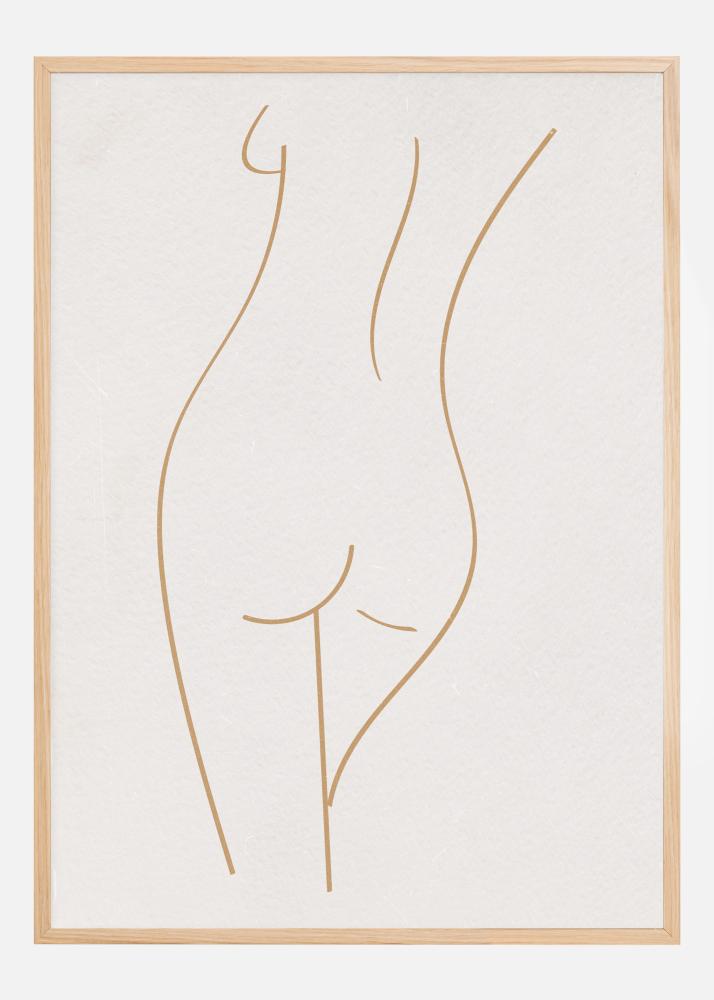 Preprosta risana plakat z žensko, ki ima hrbet obrnjen k vam. Tanke rjave črte so vse, kar je potrebno za oblikovanje te ženske, ki pozira od zadaj. Črte vodijo pogled navzgor vzdolž hrbta v tej preprosti, vendar elegantni risbi na beli podlagi.