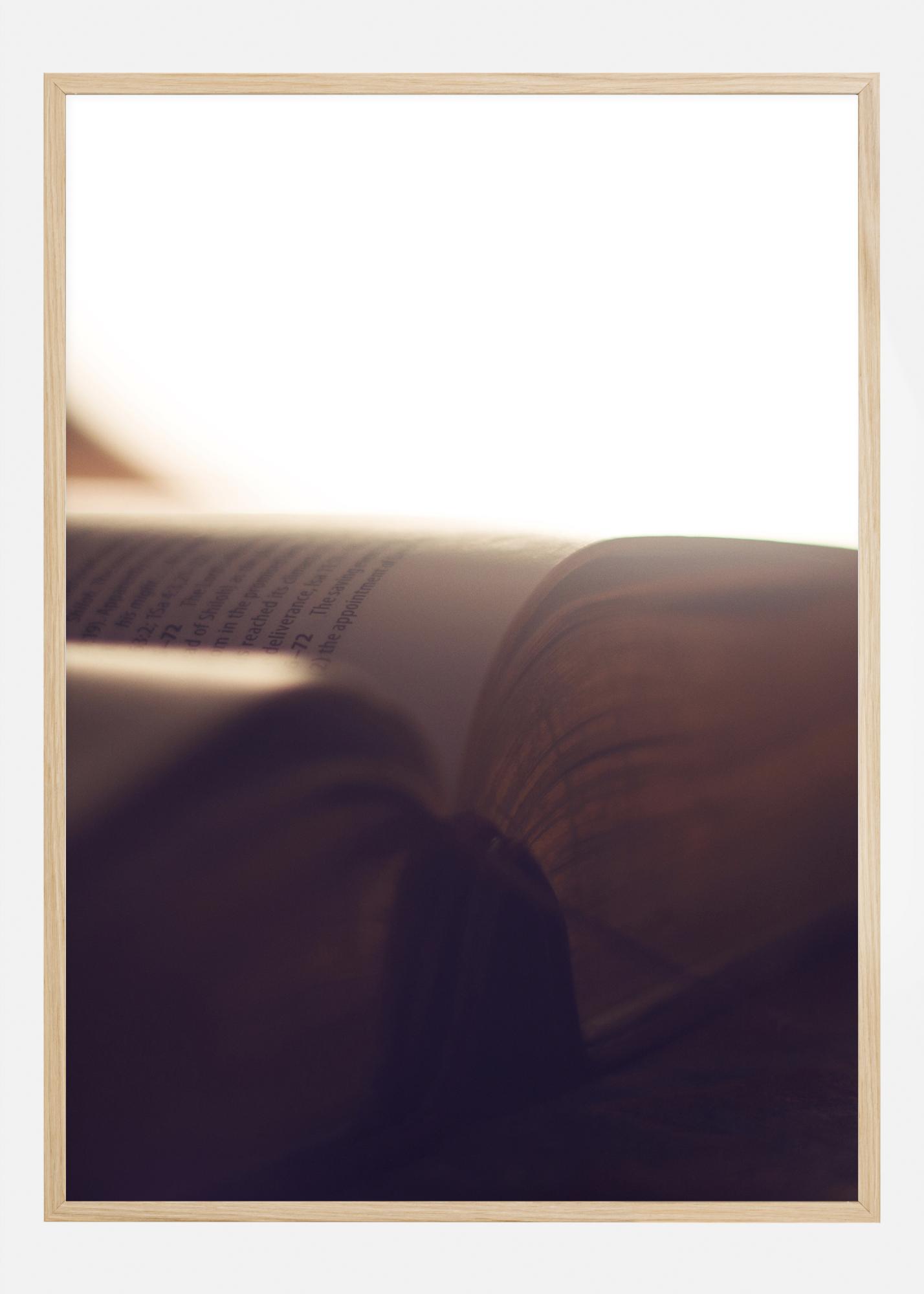 Poster s povečavo odprte knjige. Belo svetlobo zapolni večji del te slike, saj sveti na knjigo z pozlačenimi robovi strani. Besede so komaj vidne, kar pomeni, da je to popoln tisk za študijsko sobo.
