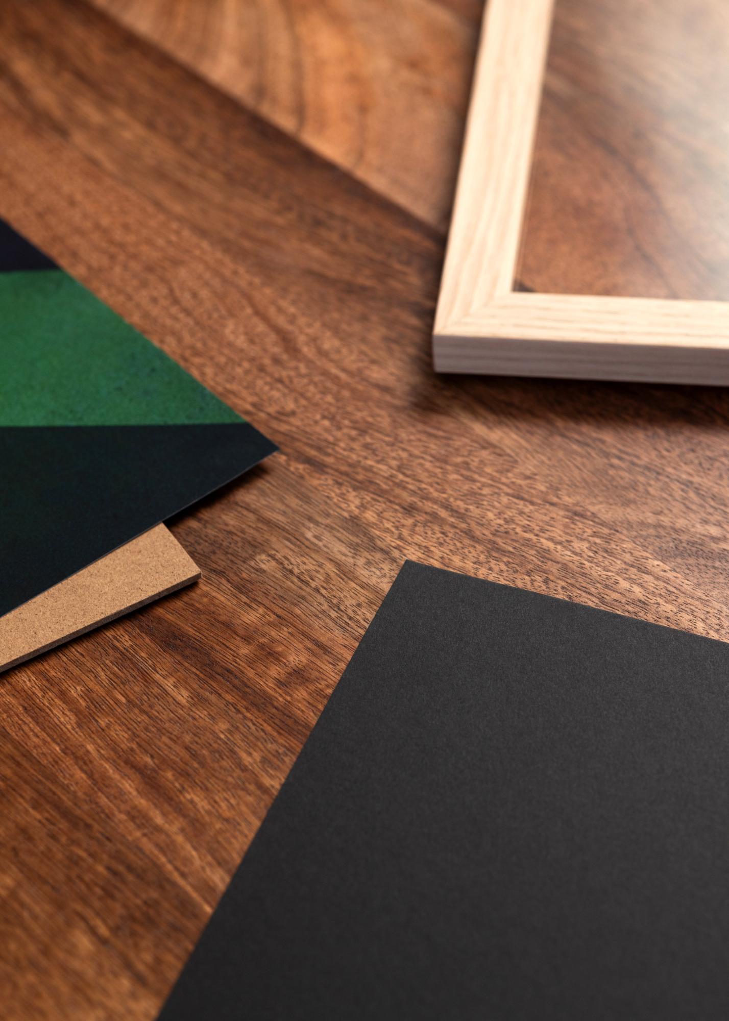 Popolno, ko želite ustvarjalno uokviriti in potrebujete črno ozadje. Črni vložek je izdelan iz kislinam odpornega črnega paspartuja, ki ščiti vaše slike pred bledenjem. Črna plošča ima debelino 1,3 mm, kar pomeni, da ustreza tudi, ko želite uokviriti s standardnim paspartujem (maks. 2 mm)