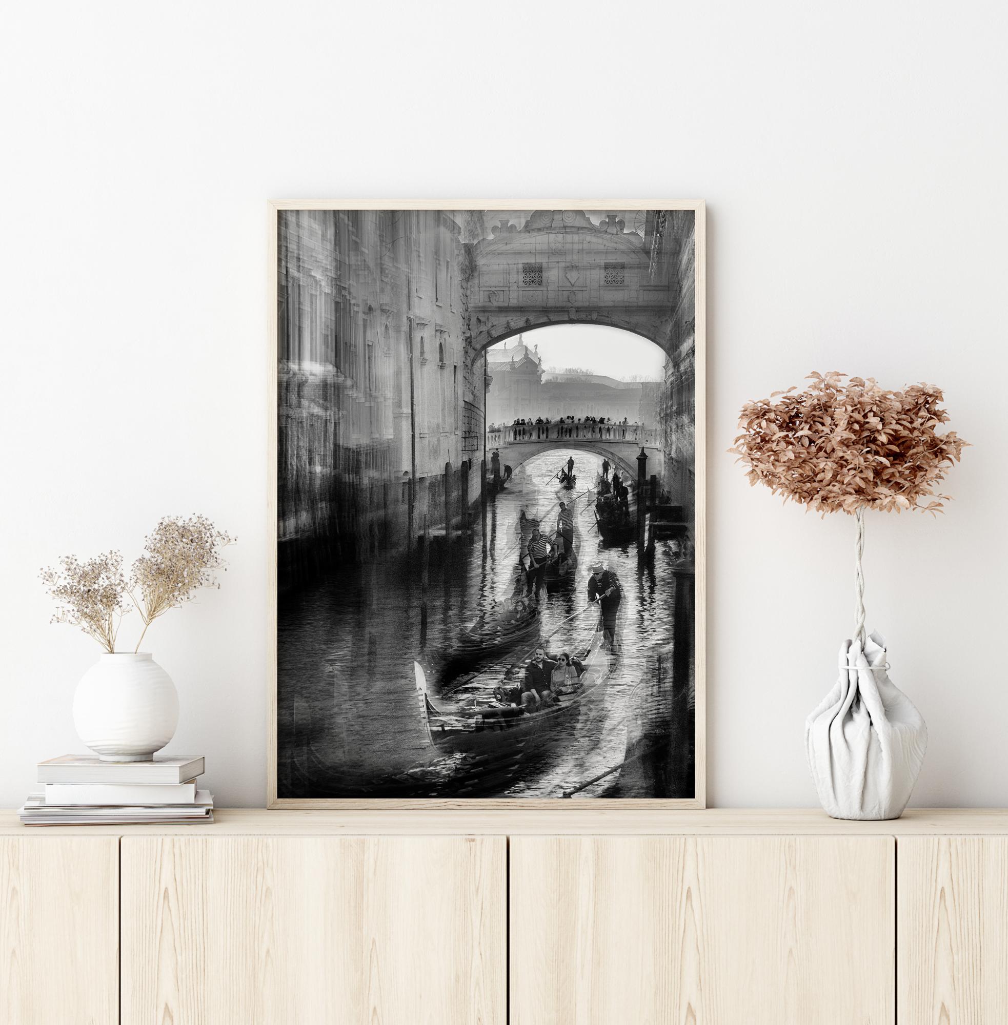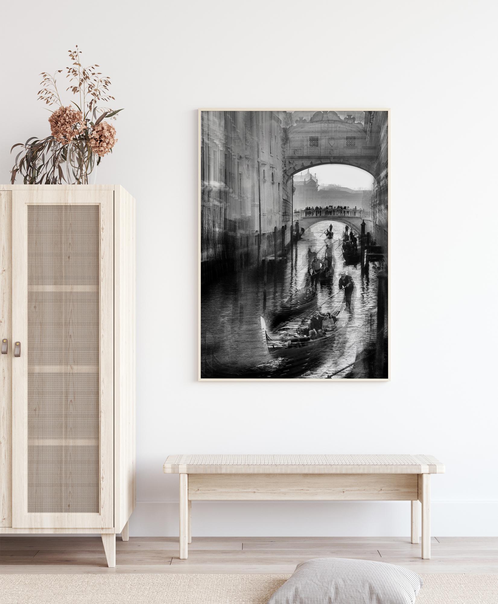 Klasičen plakat mostu v Benetkah. Sledite poti gondol, ko prečkajo mirni kanal. Odpravite se na pustolovščino v miru vašega doma s pomočjo tega slikovitega plakata.