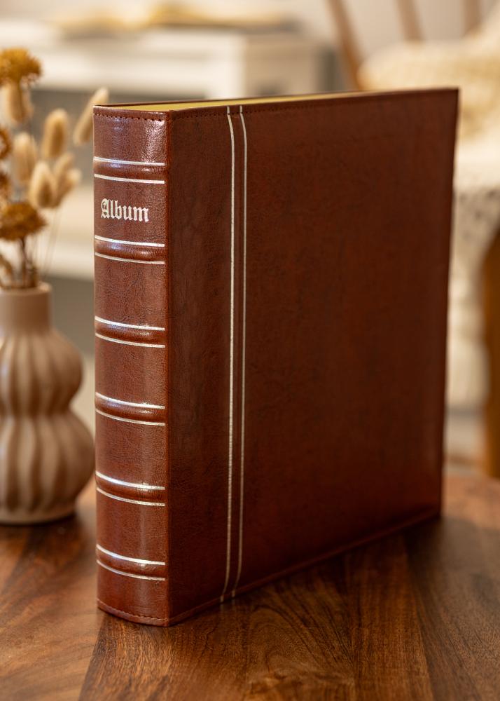 Chesterfield Gigant Ringpärm je eleganten in prostoren album v klasičnem dizajnu, popoln za zbiranje in ohranjanje vaših najdragocenejših spominov. Rjava mapa ima eleganten videz iz umetnega usnja z vtisnjenimi detajli in srebrnimi črtami, ki dajejo brezčasen in sofisticiran občutek.
