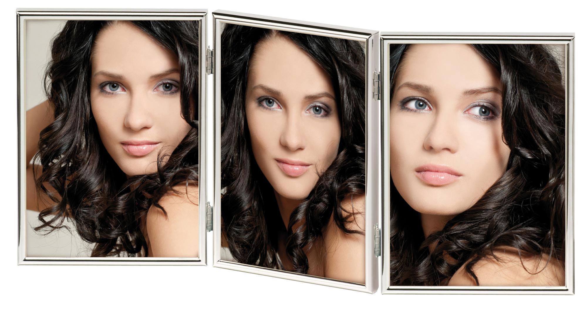 Chloe vikram je elegantni portretni okvir z zaobljenim profilom v novem srebru, ki ustreza 3 slikam velikosti 13x18 cm. Chloe je okvir visoke kakovosti blagovne znamke Walther z zadnjo stranjo oblečeno v črni žamet.