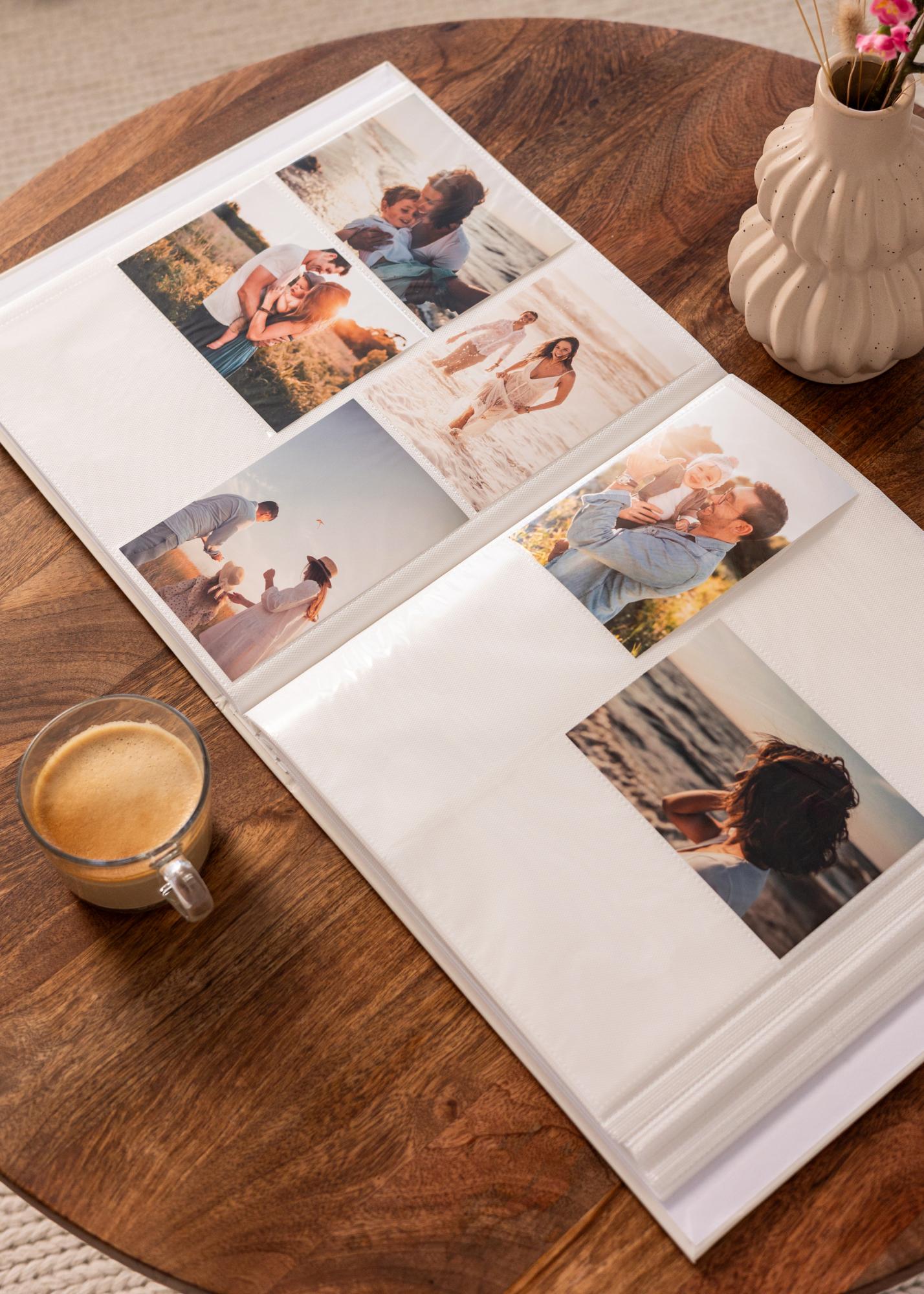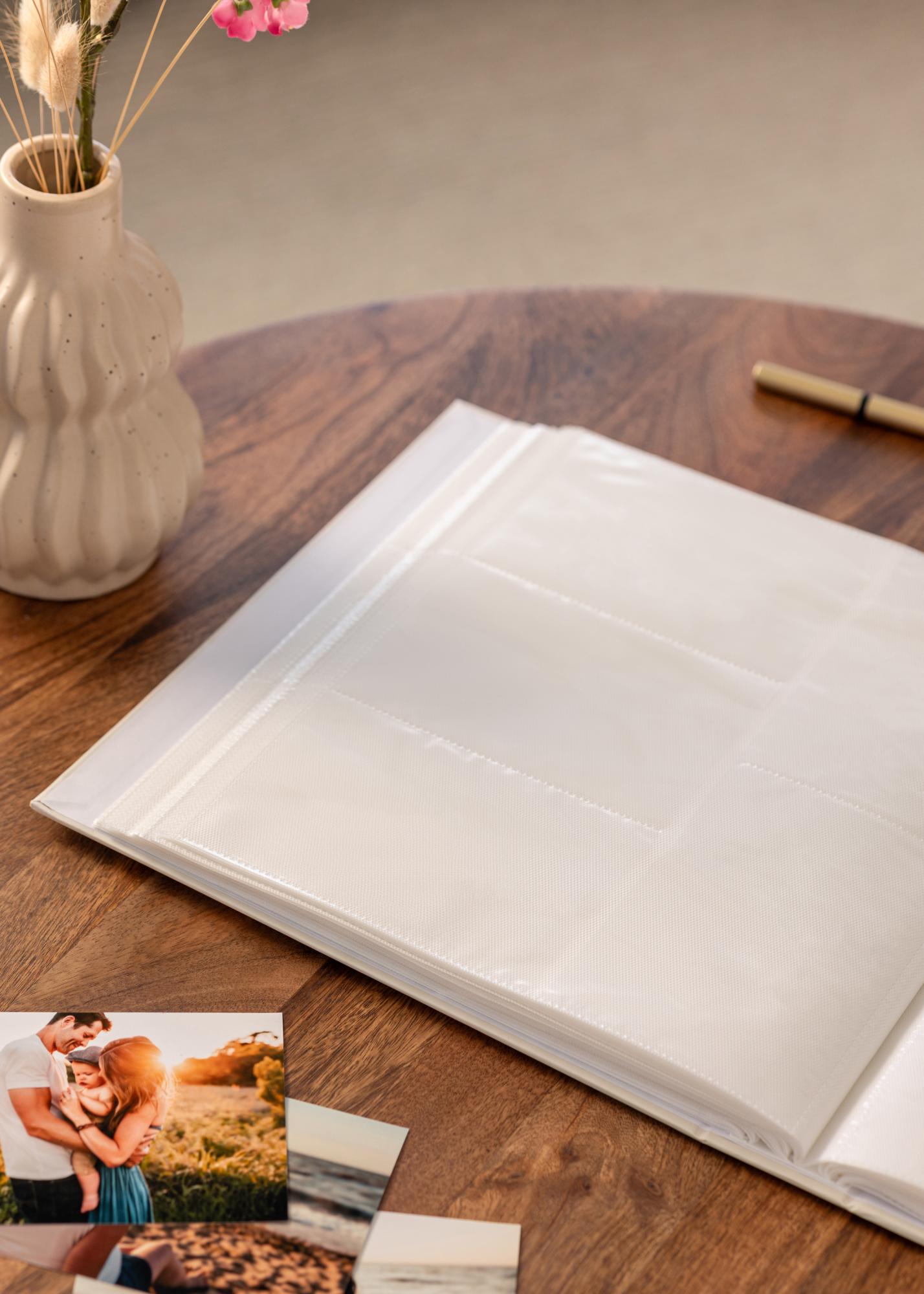 Platnice albuma so v prefinjenem sivem odtenku, ki daje brezčasen in sodoben vtis. Bele strani ustvarjajo čudovit kontrast in najbolje poudarijo vaše slike. Vsaka stran je opremljena s praktičnimi žepi za fotografije, kar omogoča enostavno nameščanje in zamenjavo fotografij brez težav.