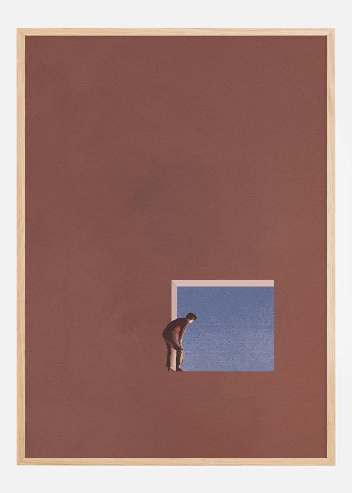 Ta sugestivni in konceptualni plakat prikazuje posameznika, ki se nagiba naprej in gleda skozi kvadratno odprtino v modri prostor, ki razbije okoliško rjavo površino. Ta preprosta, a močna slika je lahko videna kot predstavitev radovednosti in človeške želje po raziskovanju in odkrivanju neznanega. Lahko je tudi metafora za okno priložnosti in pomen tega, da izkoristimo priložnost, ko se pojavi.
