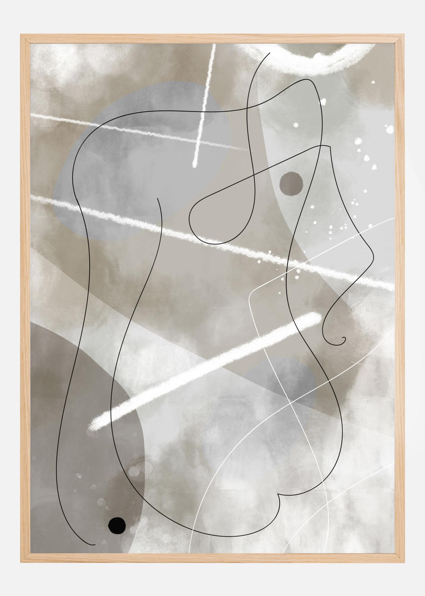 Abstraktni plakat z obrazom iz mehkih linij. Za tankimi linijami ima obraz megleno eterično modro in sivo ozadje. Druge abstraktne linije in oblike plavajo mimo, kar naredi to delo bolj kompleksno. Uživaj v raziskovanju te slike v udobju svojega doma.