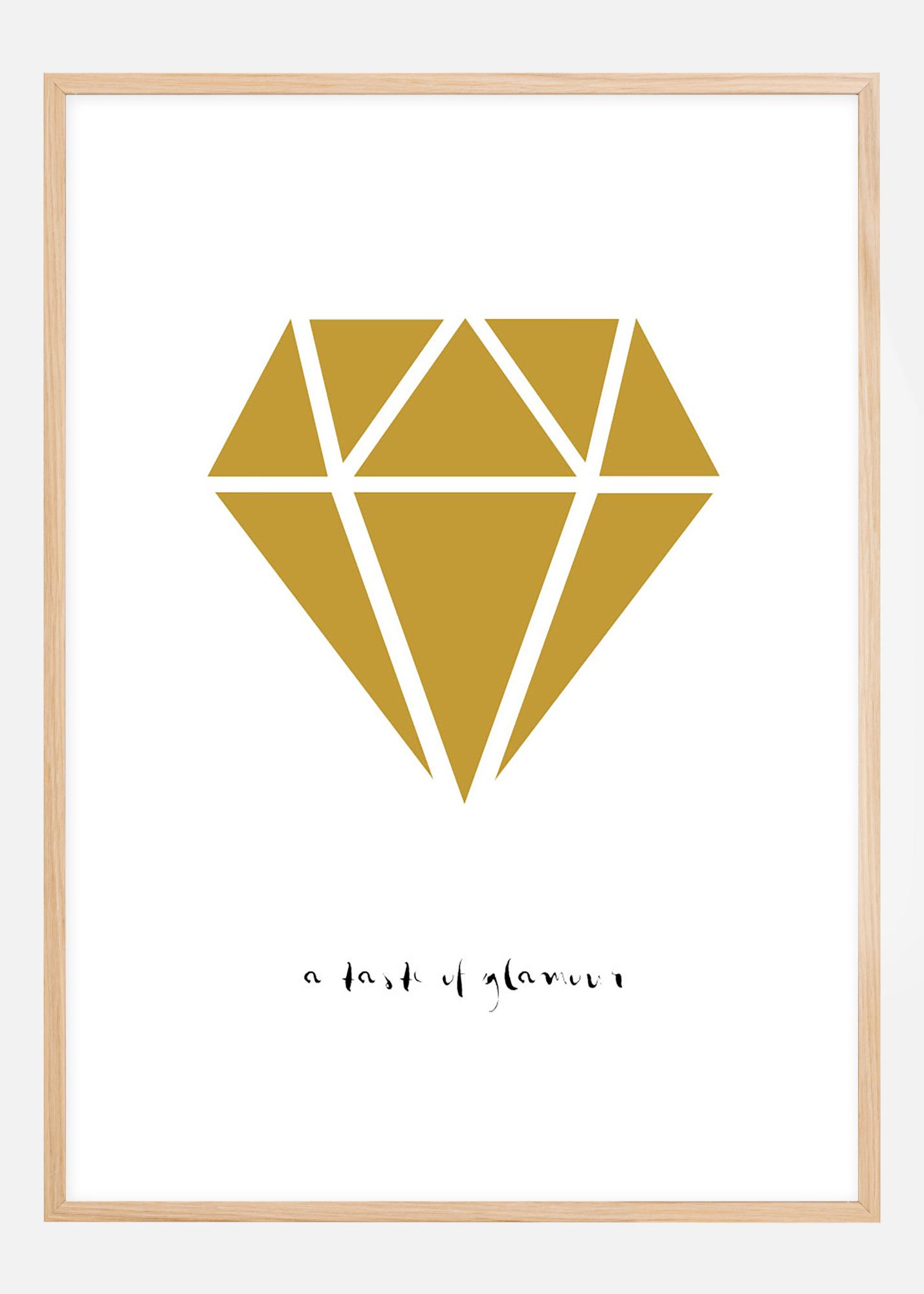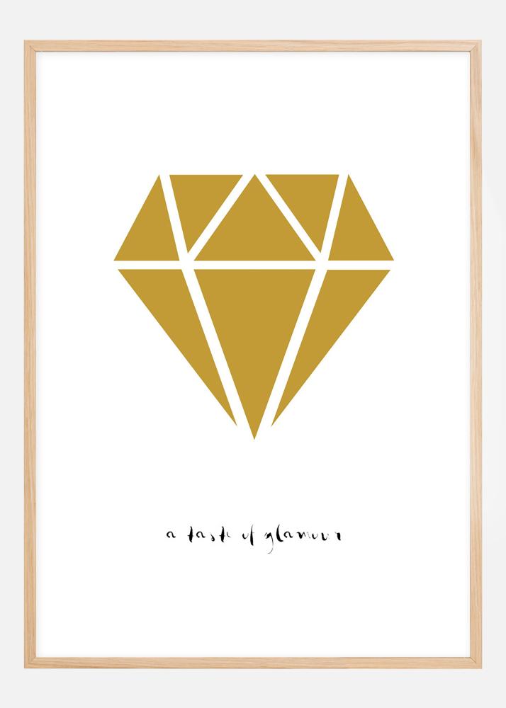 Diamanti so najboljši prijatelji deklet, tukaj pa v bolj dostopni obliki grafičnega tiska. Dajte domu občutek razkošja in elegance s čudovitim posterjem, ki ima motiv diamanta v zlatu na beli podlagi, z napisom "okus glamurja". Vsi potrebujejo malo glamurja včasih in to je enostaven način, kako ga dodati v svoje življenje.