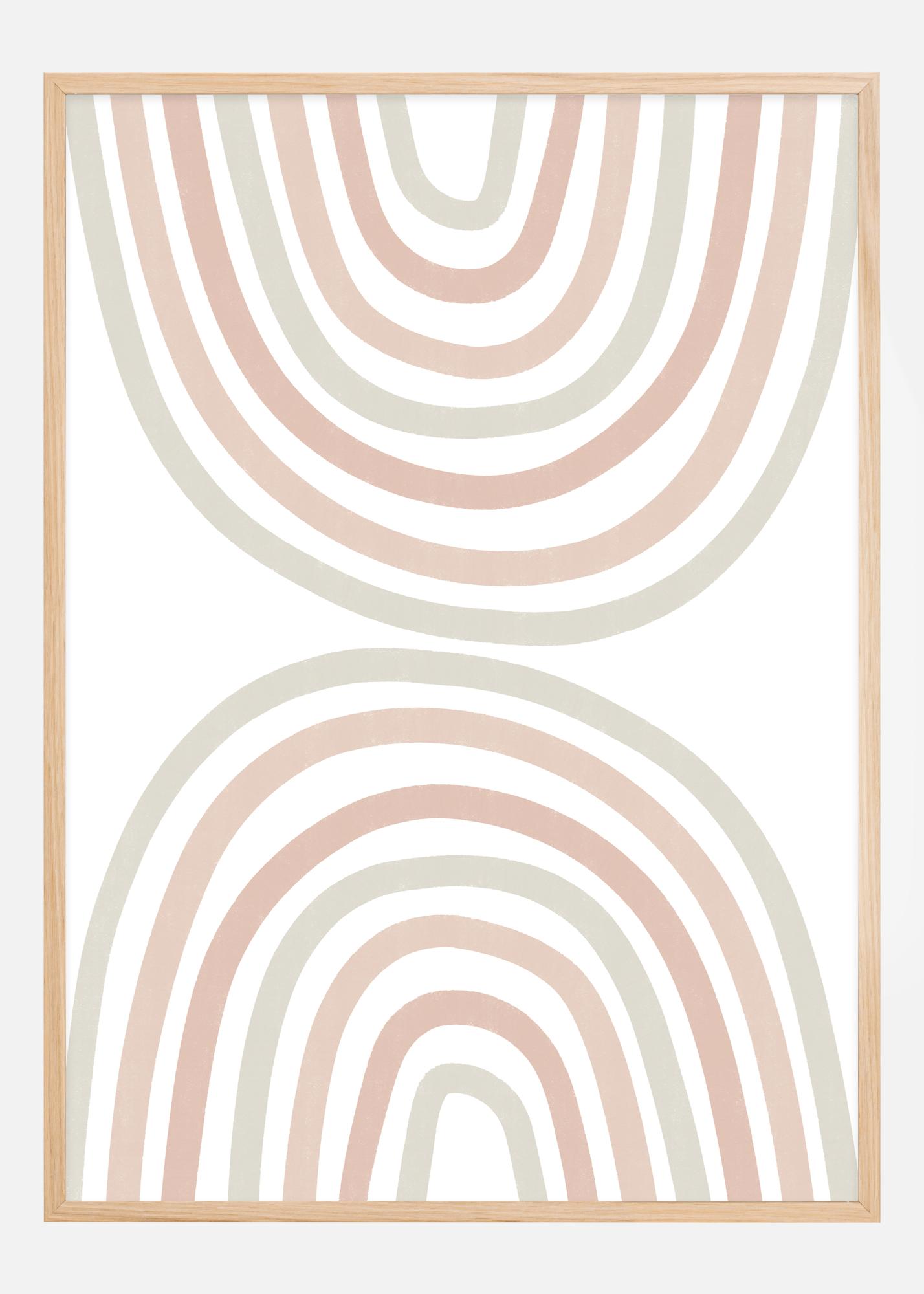 Ta sodobni in minimalistični poster z naslovom "Dvojna mavrica" prikazuje serijo koncentričnih lokov, ki tvorijo dvojno mavrico z mirno in sproščujočo barvno shemo. Mehki toni modre, bež in terakote so popolnoma uravnoteženi za ustvarjanje občutka harmonije in miru v vašem prostoru. Čiste linije in preprost dizajn naredijo ta print stilski dodatek k vsaki sodobni notranji opremi.