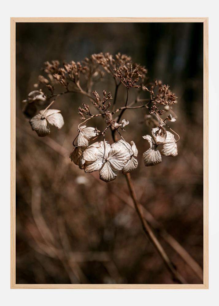 Izgubite se v lepoti minljivosti s to miselno plakatno. Tiskovina prikazuje posušene rastlinske oblike, ki ujamejo bistvo minulega poletja. Njene tople sepija in rjave tone pripovedujejo zgodbo o rasti, prehodu in cikličnem življenju narave. Motiv izstopa s svojo podrobno teksturo in prosojnimi, tankimi listi, ki nosijo sledi časa, ustvarjajoč občutek nostalgije in miru.