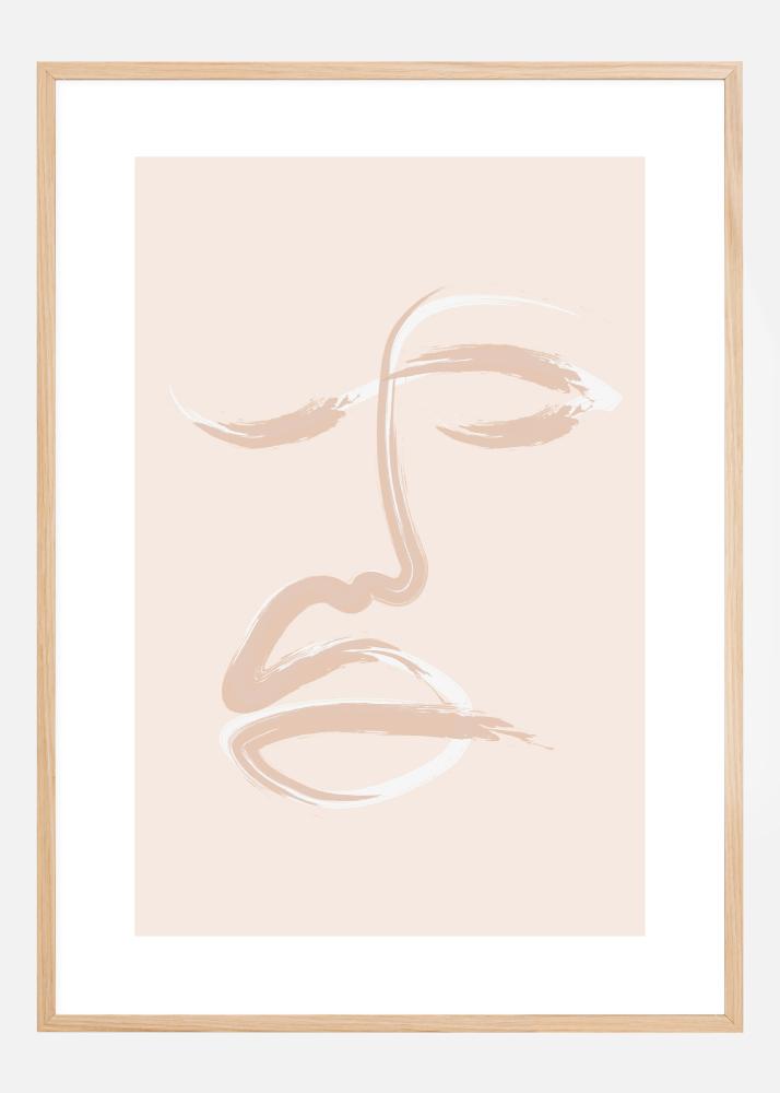 Abstraktna portretna poster z drzno roza potezo čopiča, ki ustvarja obraz. En sam poteg s čopičem se vrtinči po strani, kar ustvarja nos in usta. Oči so narejene na način, ki je skorajda kot pomežik. Z belo obrobo se ta lahko izstopa na pastelni steni.
