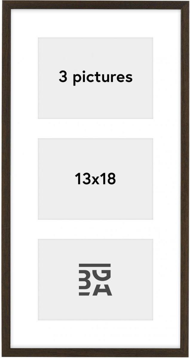 Minimalističen dizajn izostri motiv, tako da so vaše najljubše fotografije v središču pozornosti. Okvir je na voljo v več izvedbah, od tega je to različica v orehu s prostorom za 3 slike v velikosti 13x18 cm.