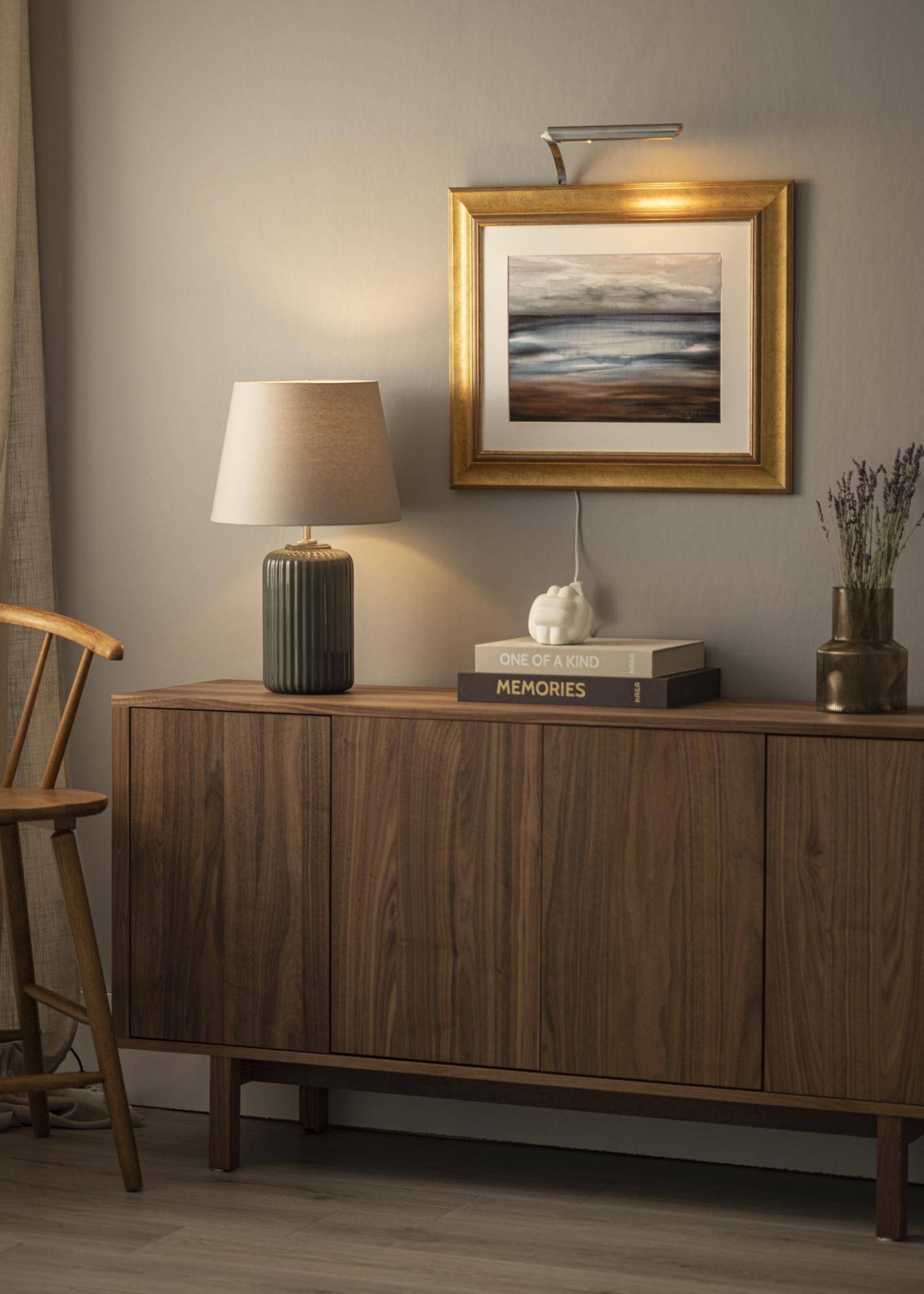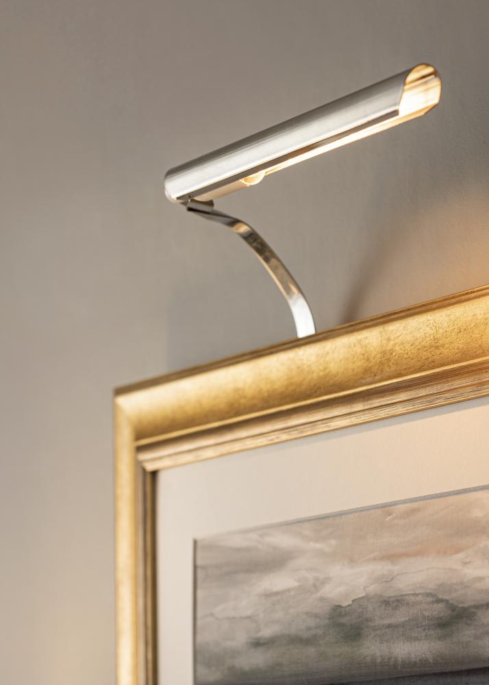 Elegantna razsvetljava za slike, ki je zasnovana in izdelana na Švedskem. Popolna izbira za vaše slike, ki jih še posebej cenite in želite zagotovljeno usmeriti pozornost nanje. Čudovit dekorativni dodatek, ki poudari vaše slike!