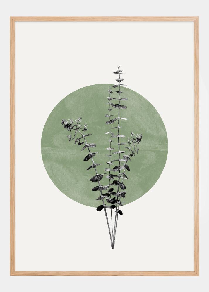 Polepšajte svojo sobo s posterjem, ki prikazuje subtilno lepoto narave na pomirjujočem zelenem ozadju, ki spominja na luno. Ta plakat prikazuje presenetljivo silhueto evkaliptusa, katerega podrobni listi in veje se zdijo živi proti nežnemu zelenem krogu. Oblikovanje slavi preprosto estetiko narave in ustvarja sproščujoč element v vaši notranji opremi.