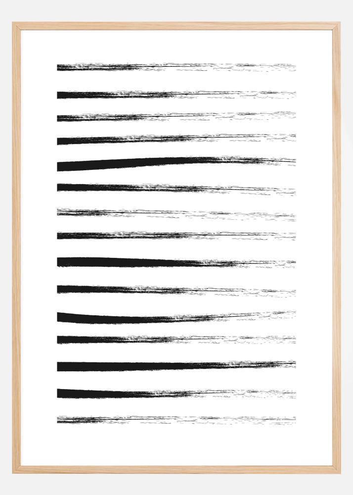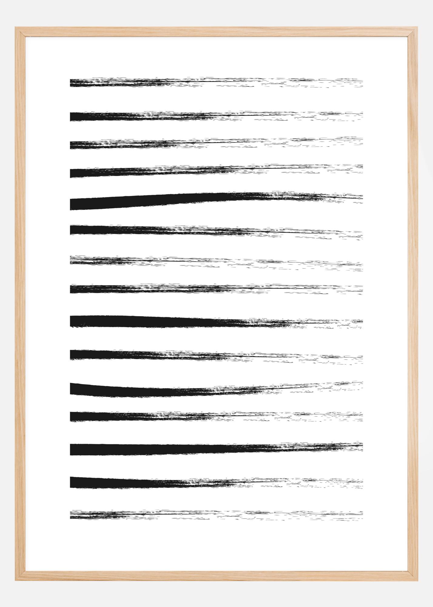 Eleganten poster s črnimi črtami. Črte se začnejo kot močne črne črte z leve strani in zbledijo proti desni, ko se poteze čopiča končajo. Ta slika bi izgledala fantastično na drzni, barviti steni, kar bi omogočilo tem črtam, da resnično izstopajo.