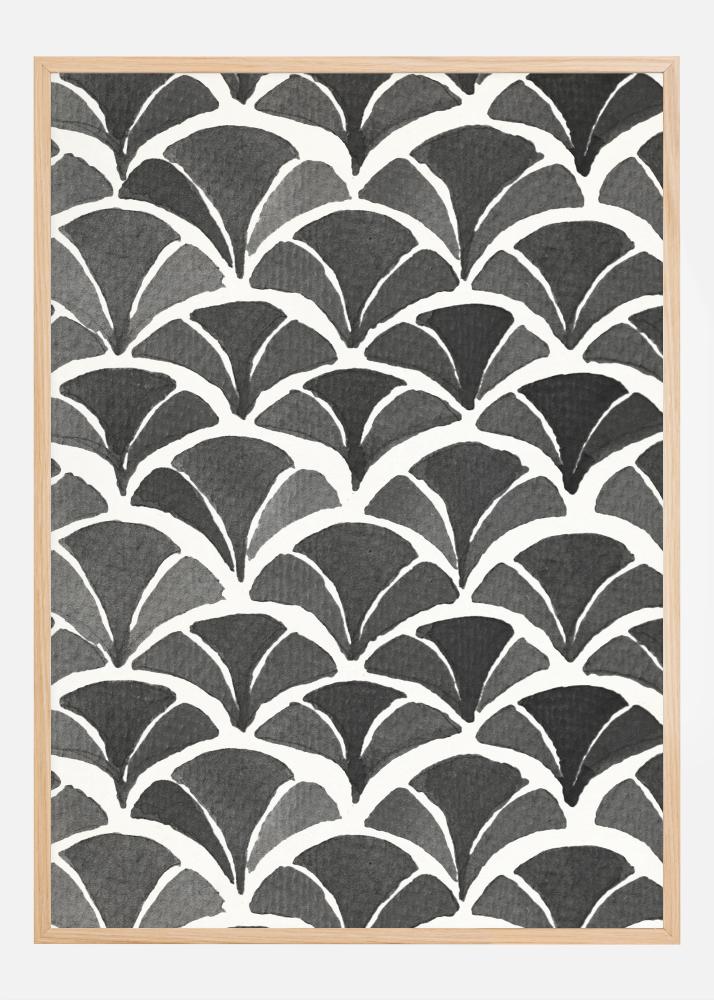 Dodajte svojemu prostoru pridih umetniške elegance s to posterjem, ki ima očarljiv vzorec listnatih peres v črno-beli barvi. Ta tiskovina ima ponavljajoč se vzorec, ki spominja na retro ventilatorje, razporejene ritmično po celotni površini, da ustvarijo občutek gibanja in simetrije. Elegantni kontrast med črno in belo zagotavlja klasičen videz, ki se prilega številnim različnim stilom notranje opreme in okoljem.