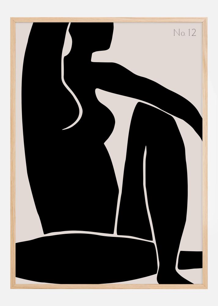 Kontrast med črno figuro in svetlim ozadjem ni le drzen, ampak tudi ponazarja srečanje med svetlobo in senco, obliko in praznino, kar ustvarja močan grafični učinek. 'Št. 12' je plakat, ki je prav toliko sodobna umetniška izkušnja kot dekorativni element, in je popoln za tiste, ki iščejo sodobno estetiko z namigom dramatičnosti. Primeren je za minimalistične ali monokromatske stile notranje opreme, kjer lahko stoji kot močan samostojen poudarek ali se kombinira z drugimi podobnimi deli za ustvarjanje impresivne stenske galerije.