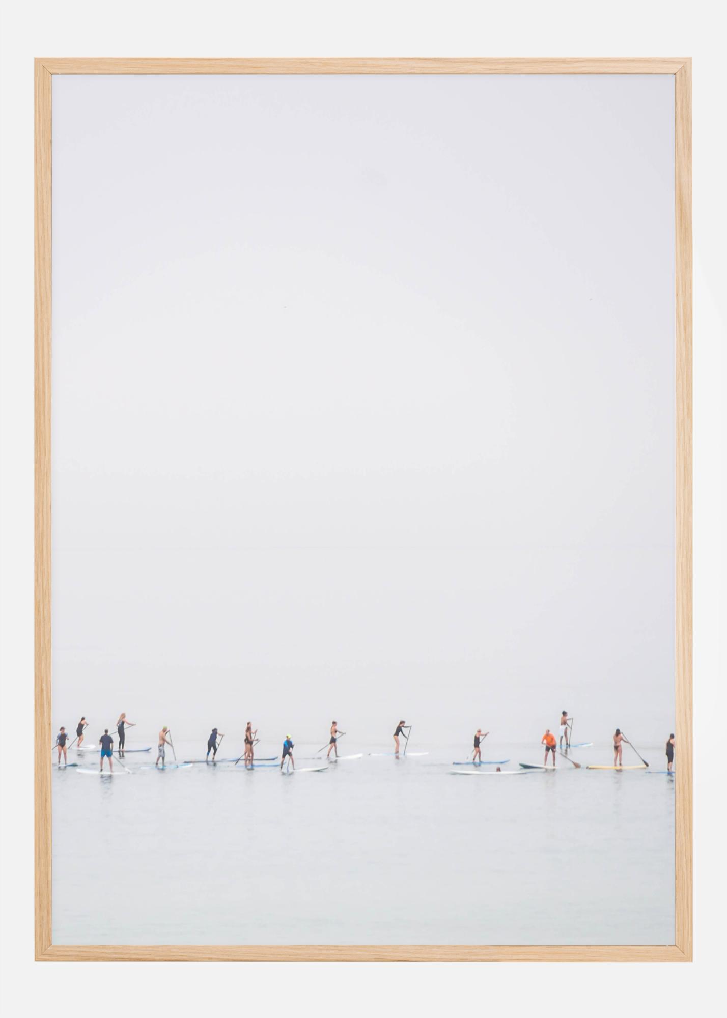 Širokokotni poster s skupino otrok, ki se igrajo v morju. Doživite veličino tega minimalističnega dela. Vsi otroci zapolnijo spodnji del slike, medtem ko se veliko morje in nebo raztezata nad njimi in pod njimi. Ustvarite iluzijo svetlobe in prostora s to obsežno podobo.