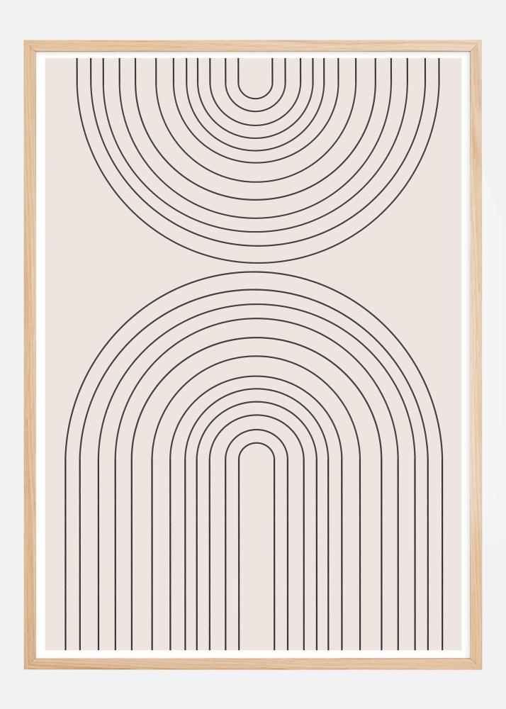 Ta elegantno oblikovan plakat predstavlja zapleteno in hipnotizirajočo serijo prepletenih lokov, ki tvorijo dve različni polobli. S prefinjeno in minimalistično estetiko so linije izjemno natančne in popolno postavljene na pomirjujoče, nevtralno ozadje, zaradi česar je popolna osnova za moderno in trendovsko notranjost. Njena diskretna barvna shema v črni na umazano beli barvi omogoča kupcem, da to sliko preprosto najdejo in uskladijo z različnimi barvami in pohištvom.