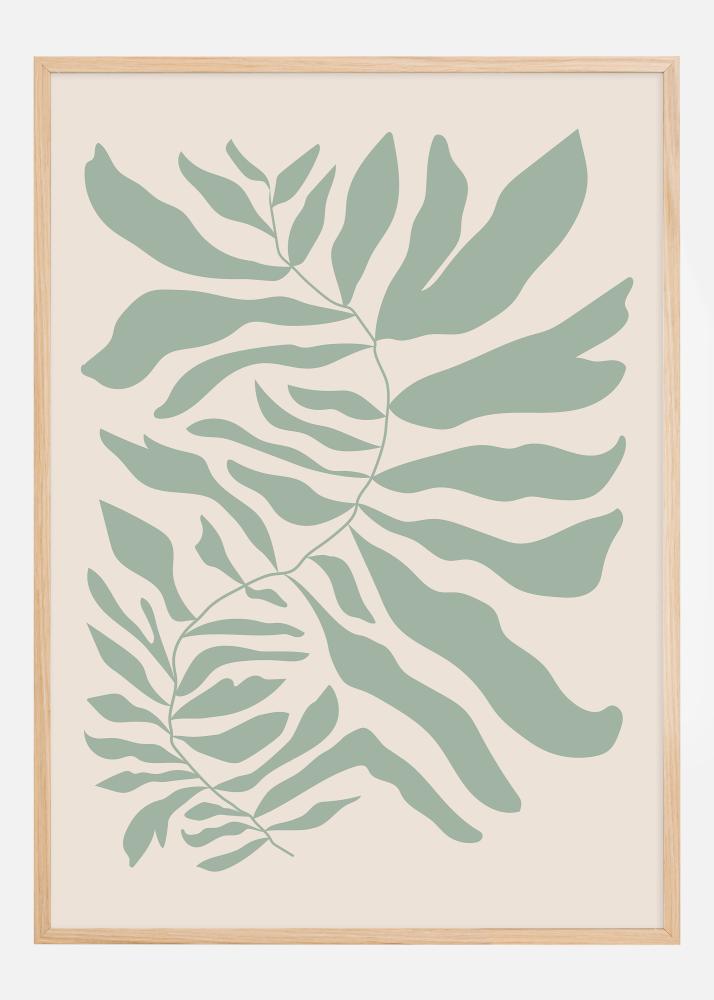S svojo svežo in čisto zasnovo ta poster ponuja upodobitev zelenih listov proti pomirjujoči bež ozadju. Njegove organske linije in naravne oblike prinašajo blagodejno prisotnost narave naravnost v vaš bivalni prostor ali delovno mesto. Barvna paleta uporablja različne odtenke zelene, od svetlejših listov do temnejših kontur, kar daje dinamičen vendar harmoničen občutek. Ta tisk je poklon preprosti lepoti narave in lahko prinese miren element v vsak notranji stil.
