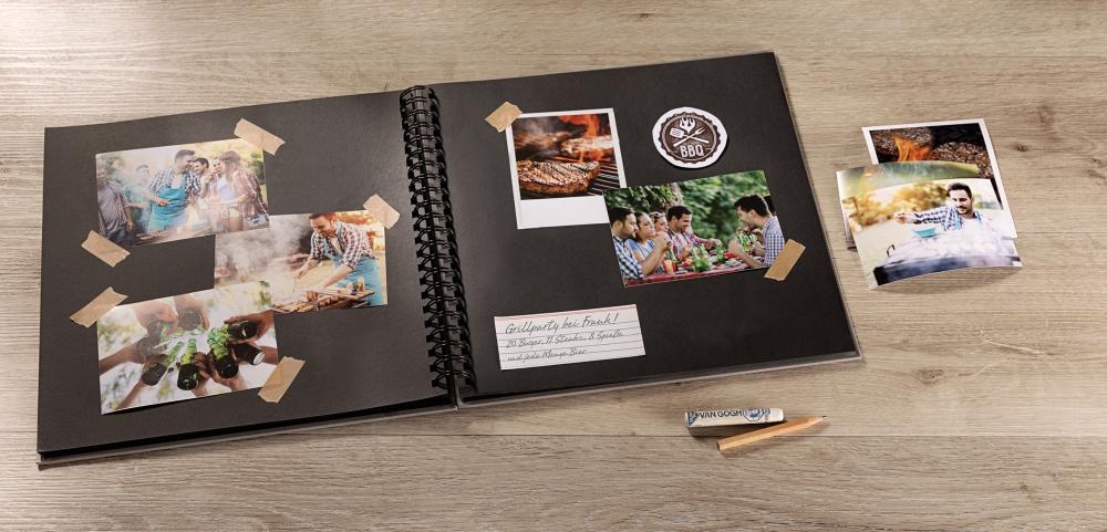 Barviti modri spiralni album z Wire-O vezavo od priznanega Waltherja. Album ima kvadratni format z dimenzijami 30x30 cm. Seveda so črne strani v albumu brez kislin. Na sprednji strani albuma je prostor za lastno sliko (10x10 cm), kar daje oseben občutek.