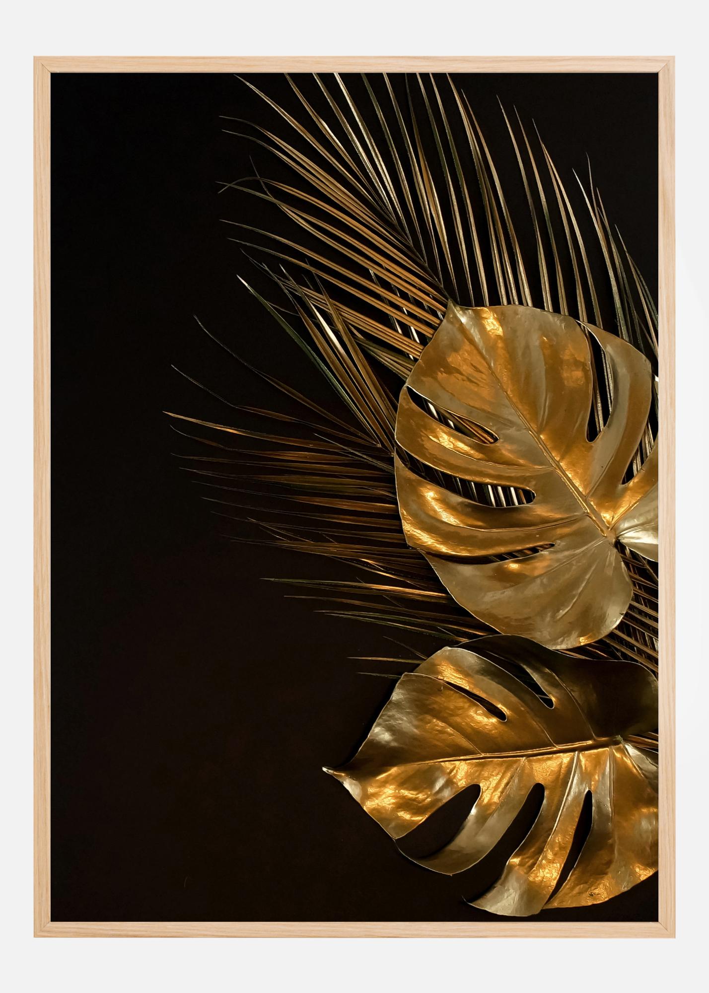 Plakat z naravno tematiko s svetlimi zlatimi listi na črnem ozadju. Zlati listi Monstere in zlato obarvani listi praproti zapolnjujejo to čudovito sliko. Bleščanje zlata ustvarja sijaj, ki kljub črnemu ozadju osvetli prostor z elegantnim, a hkrati prazničnim občutkom.