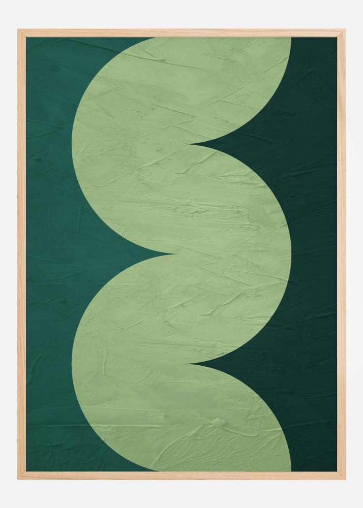 Ta abstraktna in umetniška plakat se odlikuje po svojem drzno grafičnem dizajnu s tekočimi krivuljami, ki ustvarjajo igriv in dinamičen občutek. Dva odtenka zelene, svetlejši pastelni in globlji gozdni ton, se medsebojno dopolnjujeta in zagotavljata občutek življenja in vitalnosti. To umetniško delo dodaja sodoben pridih in svežo atmosfero kateremu koli prostoru ter je poklon naravnim odtenkom zelene, ki jih najdemo v naravi.