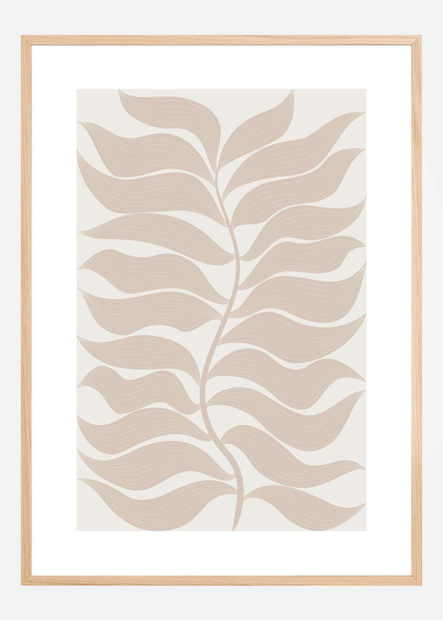 Botanični plakat z listi. Ta nežna slika prikazuje mehko, preprosto podobo enajstih listov na vsaki strani stebla. Na beli podlagi je to popoln tisk za vse ljubitelje narave ali tiste, ki jih zanimajo listi.