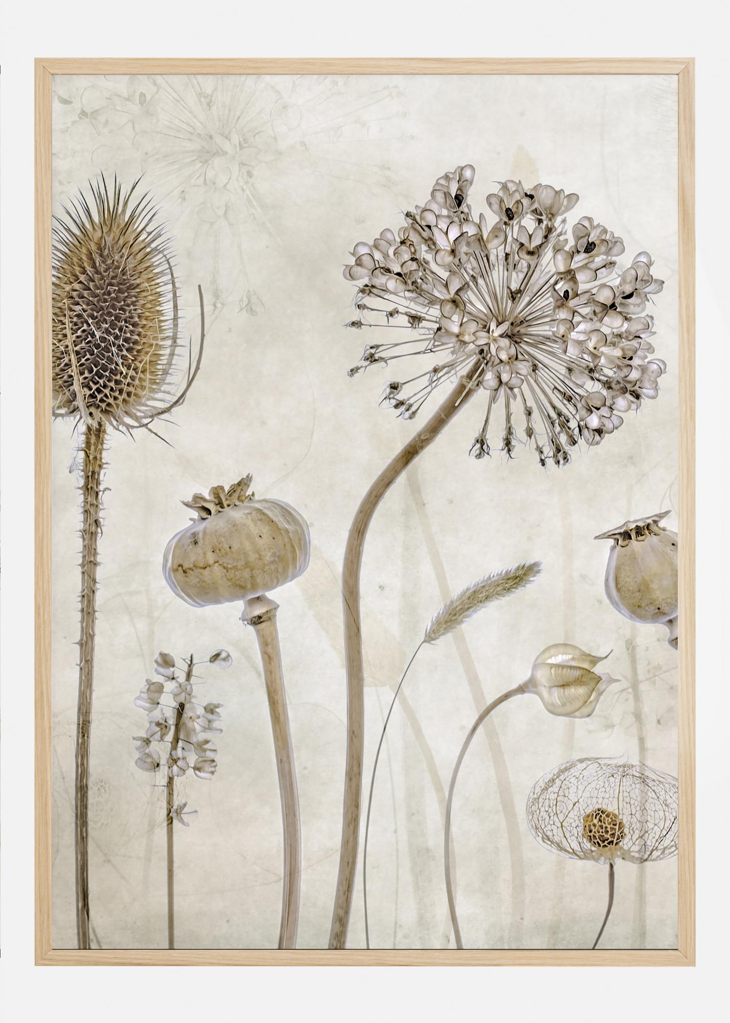 Eleganten plakat s suho travo, ki stoji visoko. Nežne bež barve ustvarjajo občutek miru in topline. Suha trava, ki piha v vetru, prispeva k občutku miru tega portreta. Obesite to preprosto, a prefinjeno sliko v vaši kuhinji za ustvaritev tistega naravnega občutka življenja.