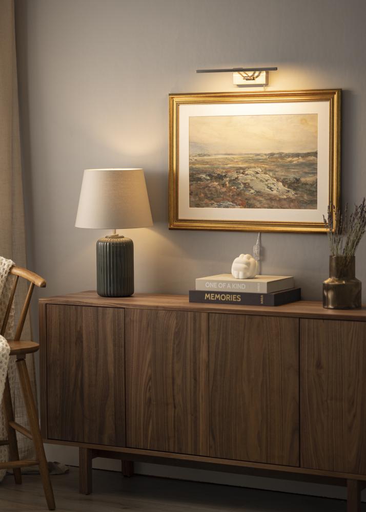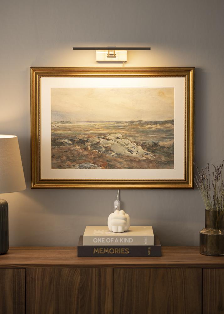 Osvetlitev slik v modernem švedskem dizajnu, ki ustreza slikam s širino 60-100 cm. Svetilka ima višino 5 cm in dolžino 37 cm z razdaljo od stene 20 cm. S svojo močno LED osvetlitvijo na 720 lumnov dobite prijetno osvetlitev tudi za večje slike.