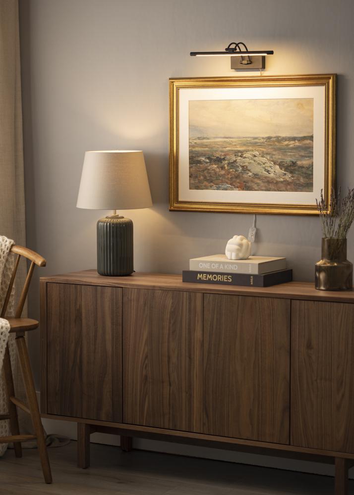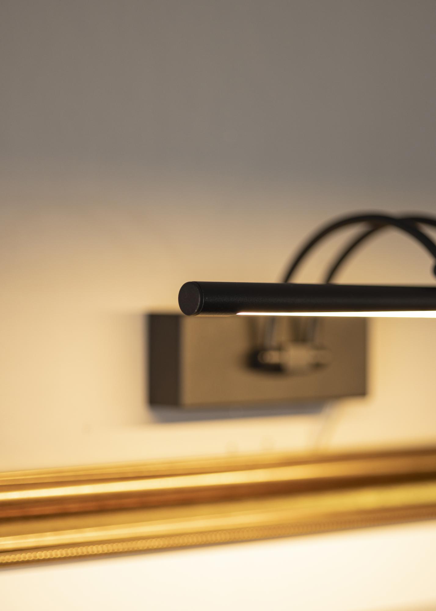 Osvetlitev slik v modernem švedskem dizajnu, ki ustreza slikam s širino 60-100 cm. Armatura ima višino 5 cm in dolžino 37 cm z razdaljo do stene 20 cm. S svojo močno LED osvetlitvijo 720 lumnov dobite prijetno osvetlitev tudi pri večjih slikah.