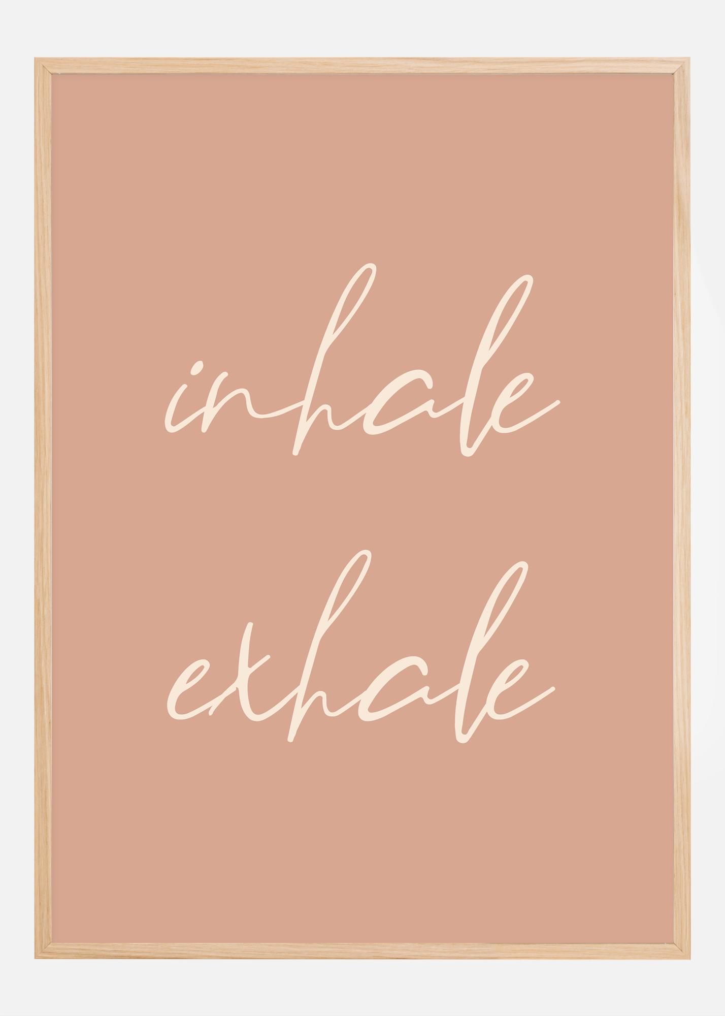 Ta čisti in pomirjujoči poster, z besedami "vdihni" in "izdihni" elegantno napisanimi, vabi k miru in refleksiji v kateremkoli prostoru, kjer je nameščen. Je stalni opomnik na moč dihanja in notranji mir, ki ga lahko dosežemo z zavestno prisotnostjo. Mehka barva ozadja v utišani rožnati daje sproščen in terapevtski vtis, ki dopolnjuje tekoče, ročno napisane besede.