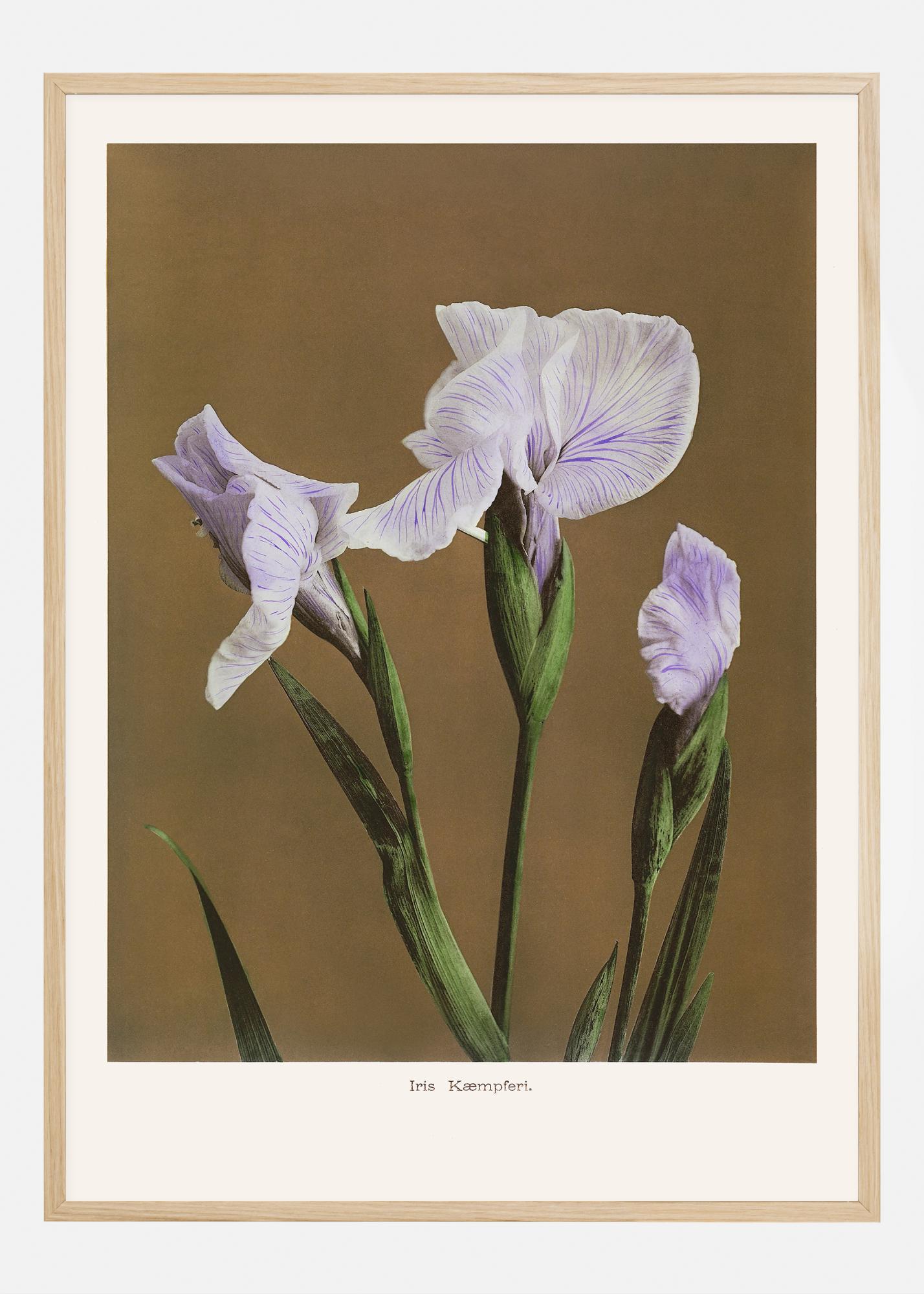 Ne le da je ljubljena zaradi svoje cvetne lepote, Iris Kaempferi je tudi simbol dobrote in sporočilnosti, zaradi česar je ta plakat smiselno darilo ali sofisticiran dodatek za vaš lasten dom. Z naravno zelenim listjem, ki se dviga proti cvetnim glavicam, ta plakat zajema bistvo cvetočega poletnega vrta. Harmonične barve vključujejo odtenke vijolične, bele in zelene barve, kar ustvarja mirno in sproščeno ozračje v vsakem prostoru, kjer je predstavljen.
