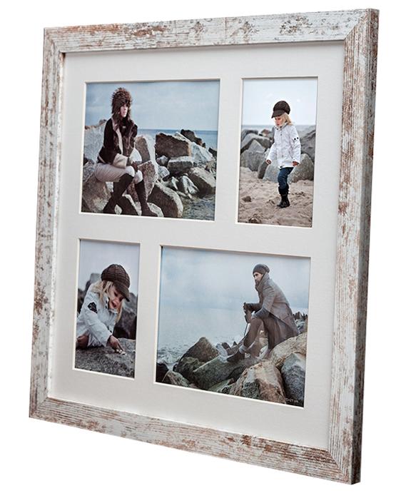 Elegantna vintage okvir s širokim profilom okvirja s starinskim videzom v beli barvi in lesu. Doda dodatno dimenzijo vašim fotografijam in je popolna, ko želite pristen vintage občutek. Kolažni okvir ima prostor za 4 slike različnih velikosti.