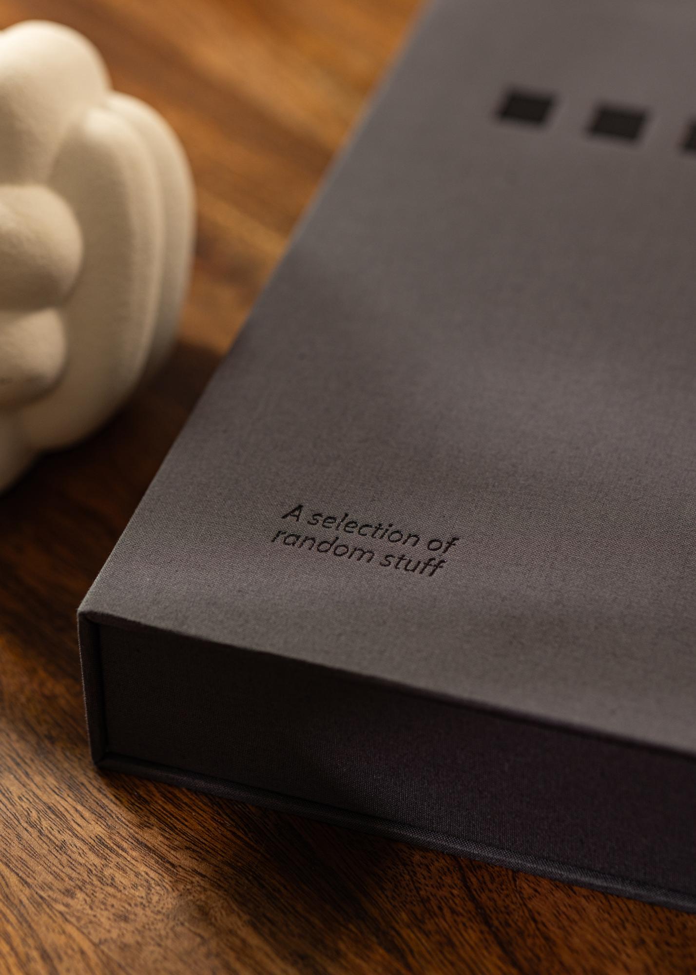Ko so besede odvečne in lahko slike ter spomini govorijo sami zase, si lahko priskrbite fotoalbum z naslovom: ... Ta Coffee Table Photo Album ima drugačen in igriv – vendar hkrati zelo stilno – dizajn, ki ga naredi enako toliko lep in trendovski dekorativni element kot praktičen fotoalbum. Fotoalbum je elegantno oblečen v črno tkanino, neizrečeni naslov pa je sijajno natisnjen na sprednji strani albuma. V spodnjem levem kotu albuma najdete tudi tisk s podnaslovom A selection of random stuff.