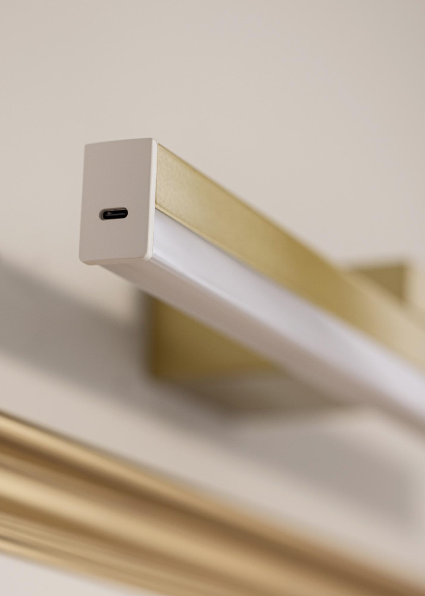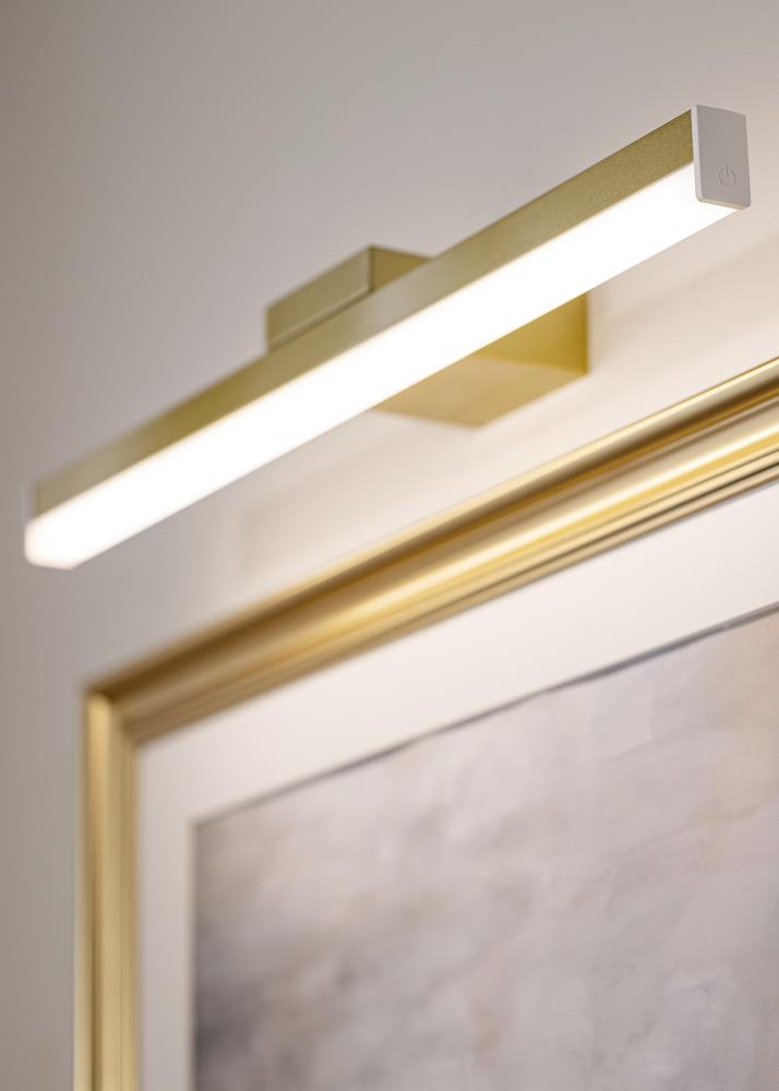 KAILA Glimmer je eleganten in na baterije delujoč osvetljevalec za slike v zlati barvi, zasnovan tako, da na stiliziran način poudari vaša umetniška dela – popolnoma brez kablov. Brezžična zasnova omogoča enostavno namestitev svetila kjer koli brez potrebe po upoštevanju električnih vtičnic. Sofisticirana zlata obdelava daje ekskluziven občutek, medtem ko integrirana luč ustvarja enakomerno in prijetno osvetlitev. Enostaven za namestitev in uporabo – popolna rešitev za dajanje pozornosti, ki si jo vaše slike zaslužijo.