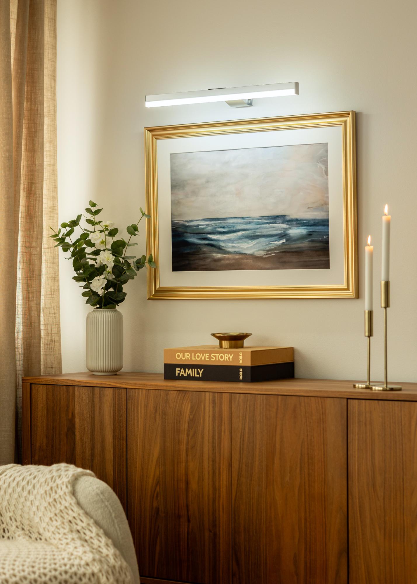 Ta baterijska osvetlitev slik ponuja praktično in prilagodljivo rešitev za osvetlitev vaših umetnin brez potrebe po kablih. Zaradi baterijske konstrukcije lahko svetilko postavite kjer koli, kar omogoča enostavno dodajanje modnega in elegantnega svetlobnega poudarka nad na primer sliko ali fotografijo. S globino 15 cm in dolžino 55 cm je svetilka popolnoma prilagojena za enakomerno osvetlitev slik do širine 80 cm.