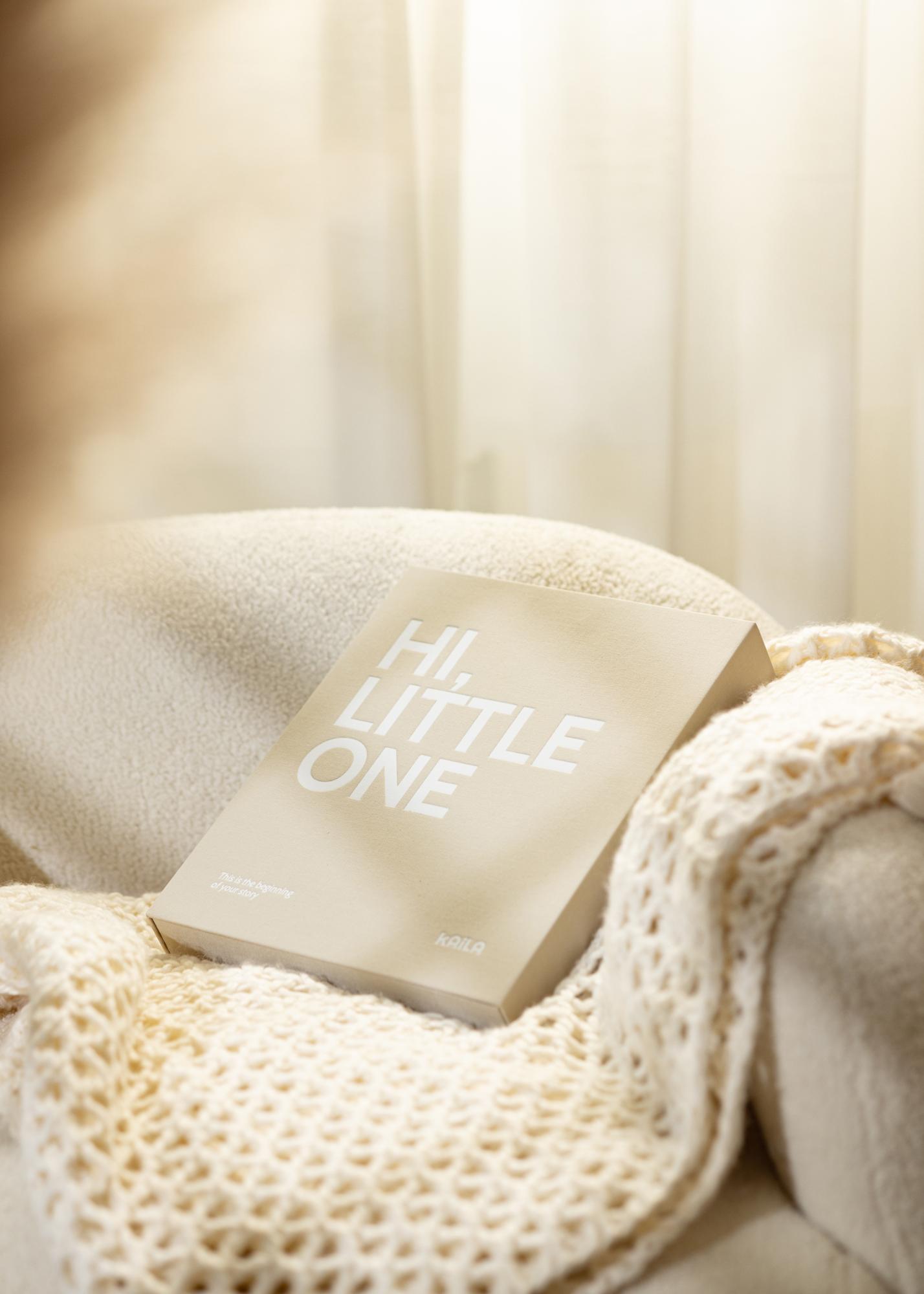 Ohranite svoje najbolj dragocene spomine na eleganten način in jih shranite v lepem Coffee Table foto albumu. Ta foto album ima naslov HI LITTLE ONE” natisnjen z velikimi belimi črkami na sprednji strani in podnaslov, ki se glasi ”This is the beginning of your story”, kar naredi ta album popoln za vaše čudovite fotografije iz prvih dni z dojenčkom.