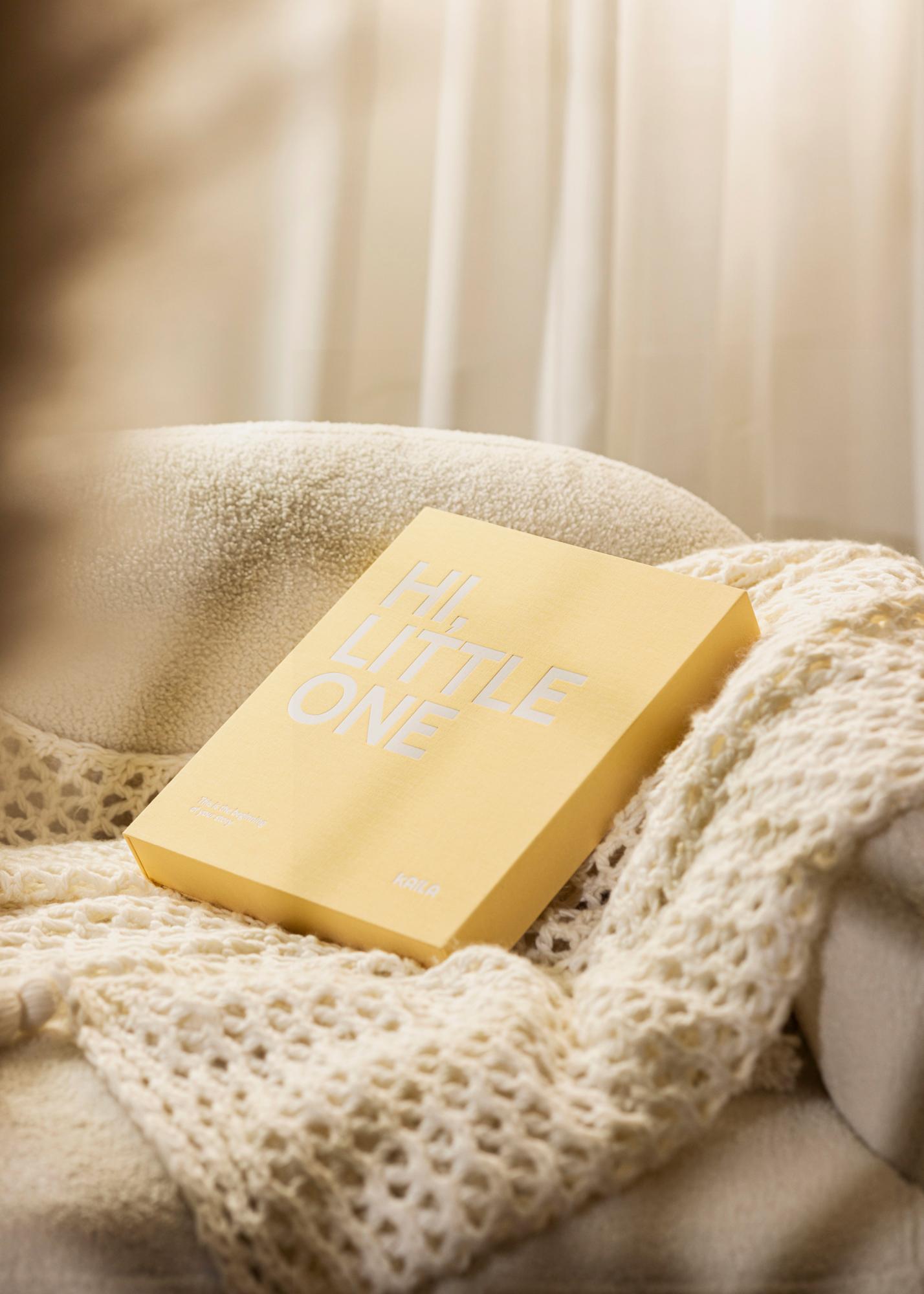 Ohranite svoje najdražje spomine na eleganten način in jih shranite v lep Coffee Table Photo Album. Ta foto album ima naslov "HI LITTLE ONE" natisnjen v velikih belih črkah na sprednji strani in podnaslov, ki se glasi "This is the beginning of your story", kar naredi ta album popoln za vaše lepe fotografije iz prvih trenutkov z vašim dojenčkom.